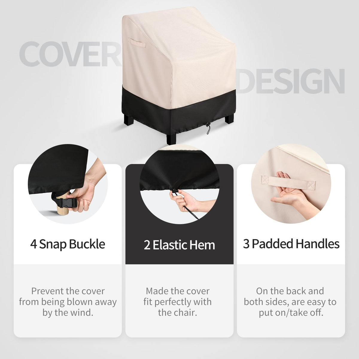 Boltlink Patio Furniture Covers Waterproof For Chairs, Heavy Duty Outdoor Lawn Chair Covers 2 Pack Fits Up To 32W X 37D X 36H Inches, White & Black