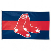 Boston Red Sox FlagOfficially licensed 3ft x 5ft flag with attached D-rings The imprint is 100% show through to the backside with a long lasting color-fast die Fly on a flagpole or hang it on a wall Flags come poly-bagged with header and graphic displayed Made in USA