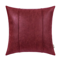Brawarm Burgundy Leather Throw Pillow Covers 22 X 22 Inches - Faux Leather Pillow Cover With Piping, Hand Stitched Leather Throw