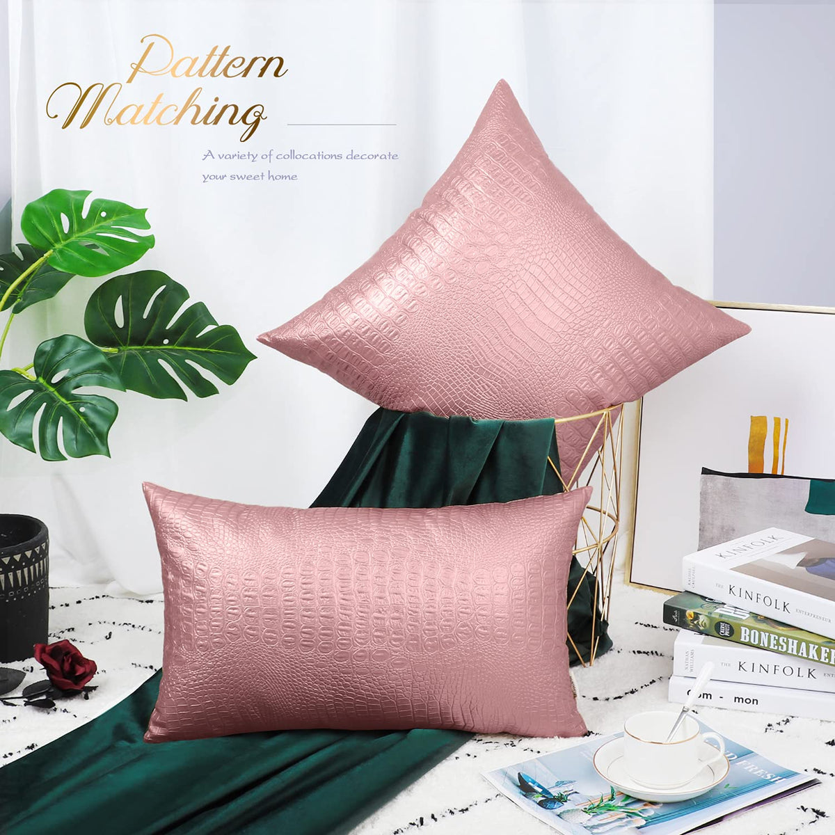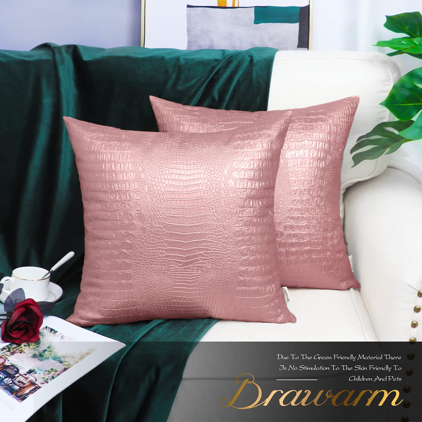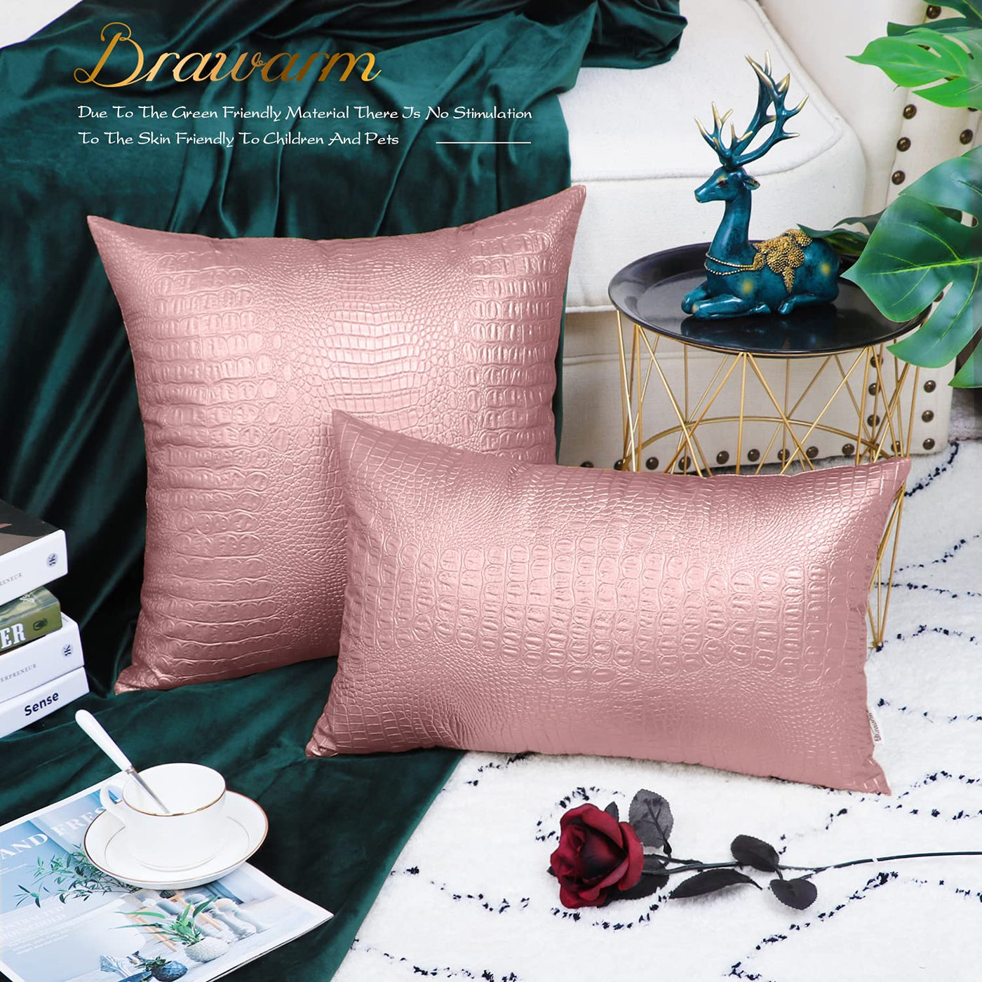 Brawarm Faux Leather Pillow Covers 22 X 22 Inches, Rose Gold Leather Pillow Covers Pack Of 2, Crocodile Leather Decorative Throw