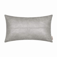 Brawarm Faux Leather Throw Pillow Covers 12 X 20 Inches, Gray Leather Pillow Cover, Hand Stitched Leather Decorative Lumbar Pill