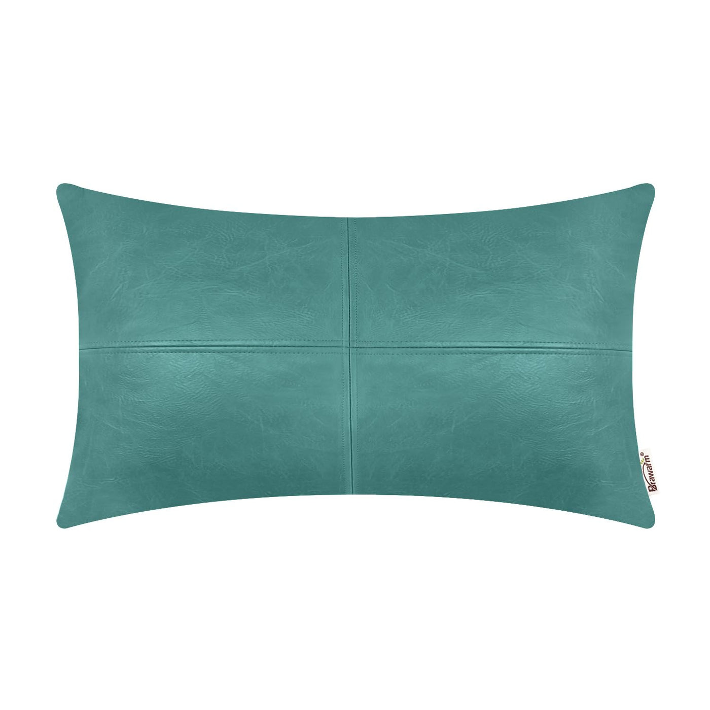 Brawarm Faux Leather Throw Pillow Covers 12 X 20 Inches, Teal Leather Pillow Cover, Hand Stitched Leather Decorative Lumbar Pill