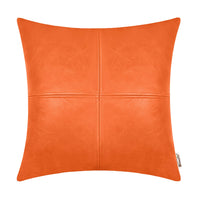 Brawarm Faux Leather Throw Pillow Covers 16 X 16 Inches, Orange Leather Pillow Cover, Hand Stitched Leather Decorative Pillow Co