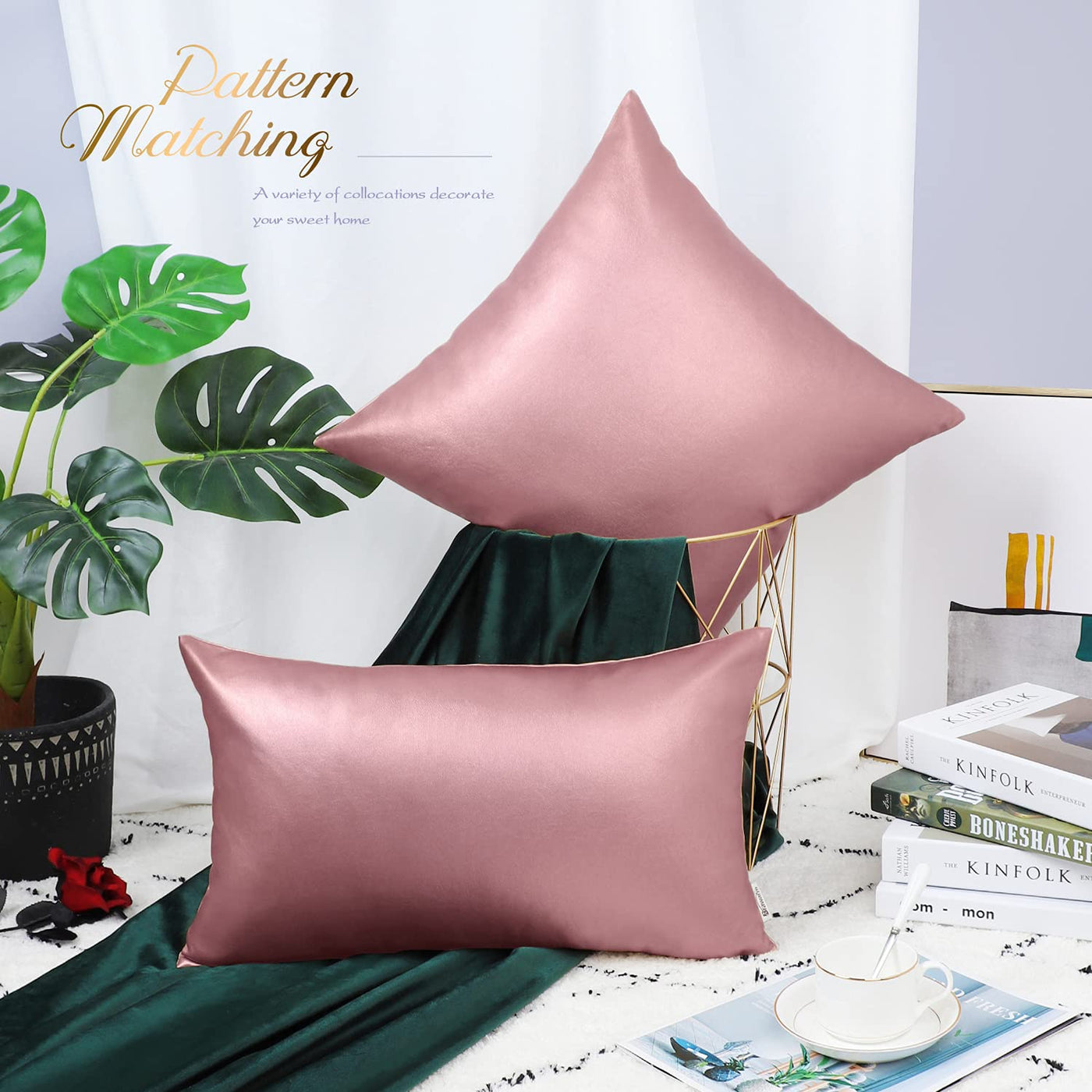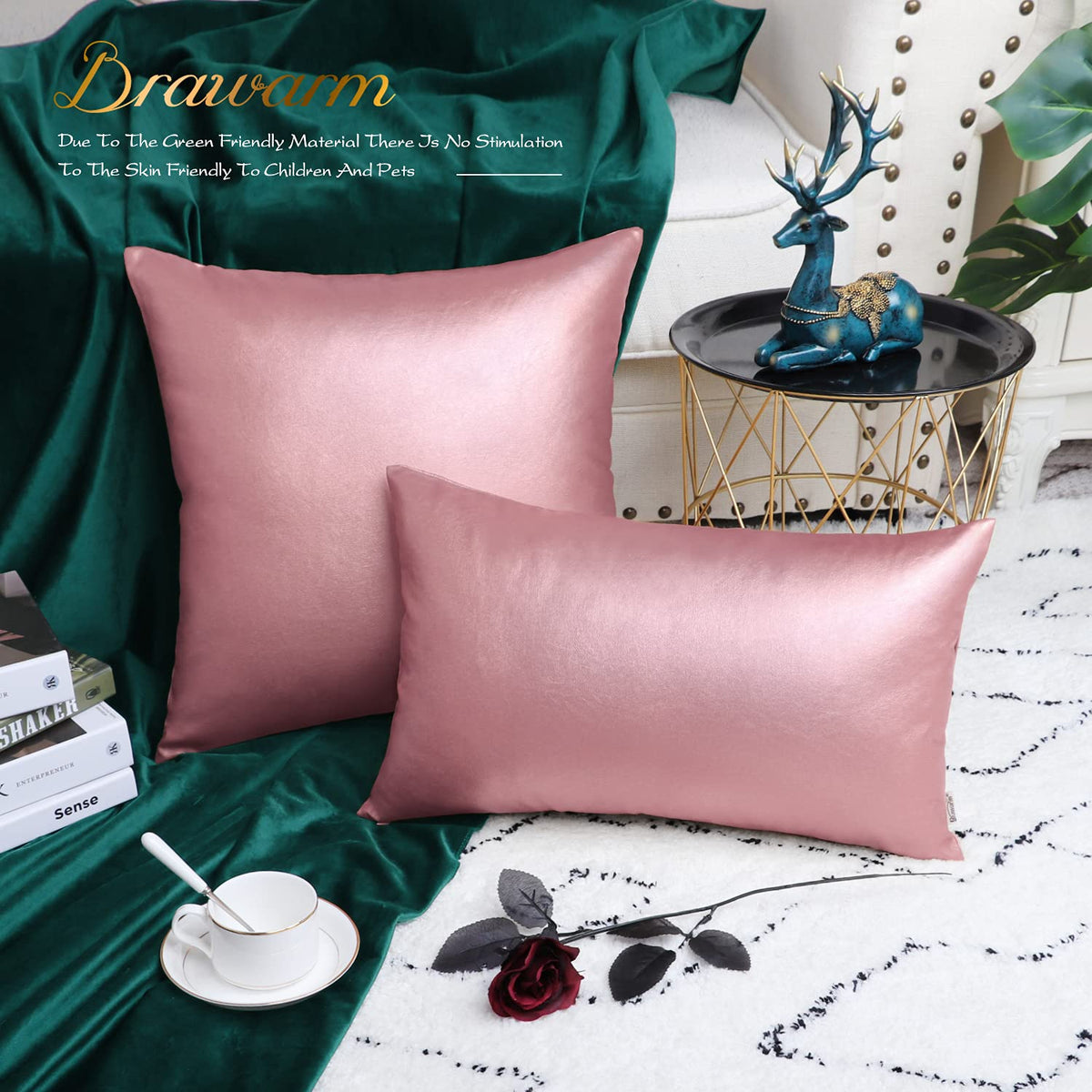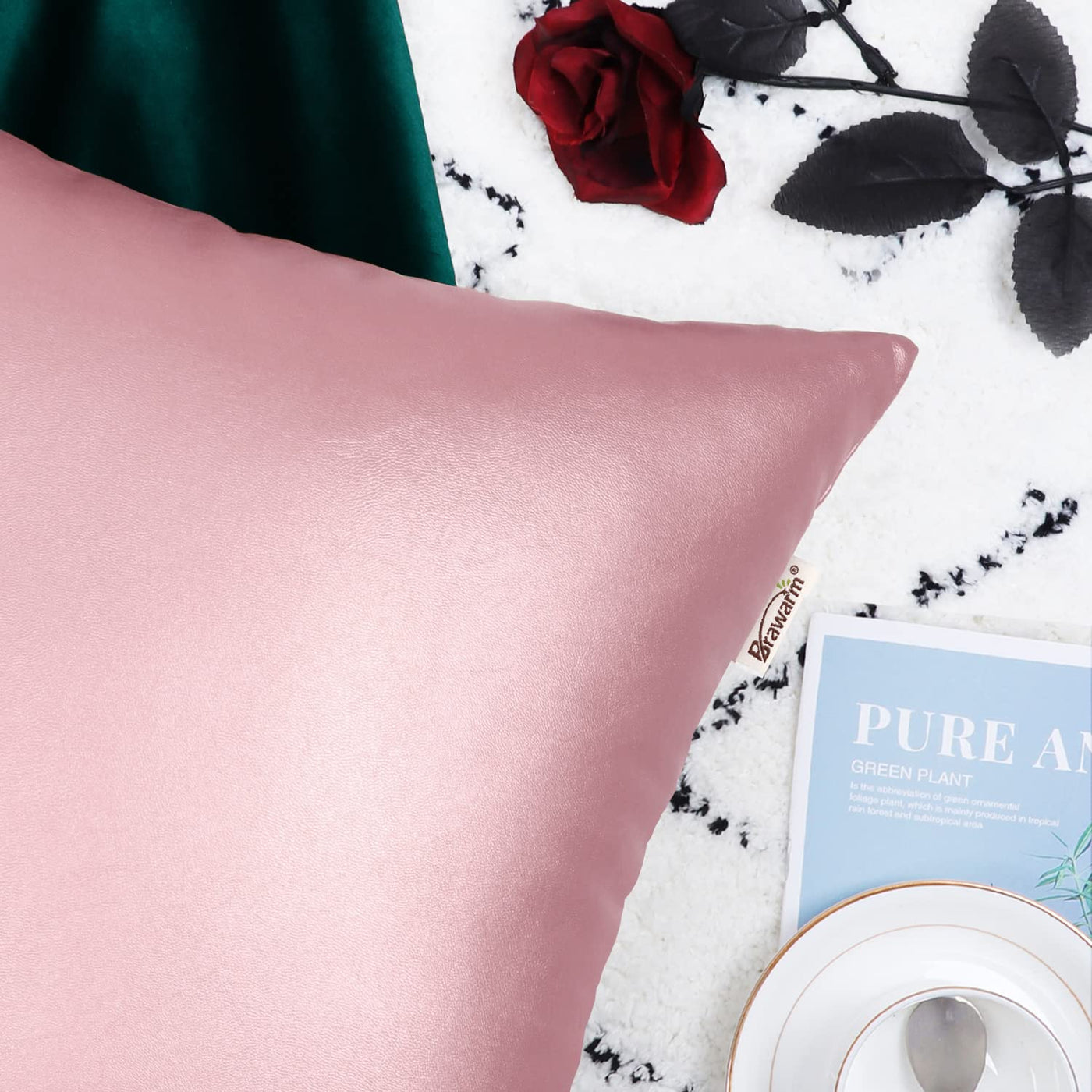 Brawarm Faux Leather Throw Pillow Covers 16 X 16 Inches - Rose Gold Leather Pilow Covers Pack Of 2, Solid Dyed Leather Pillowcas
