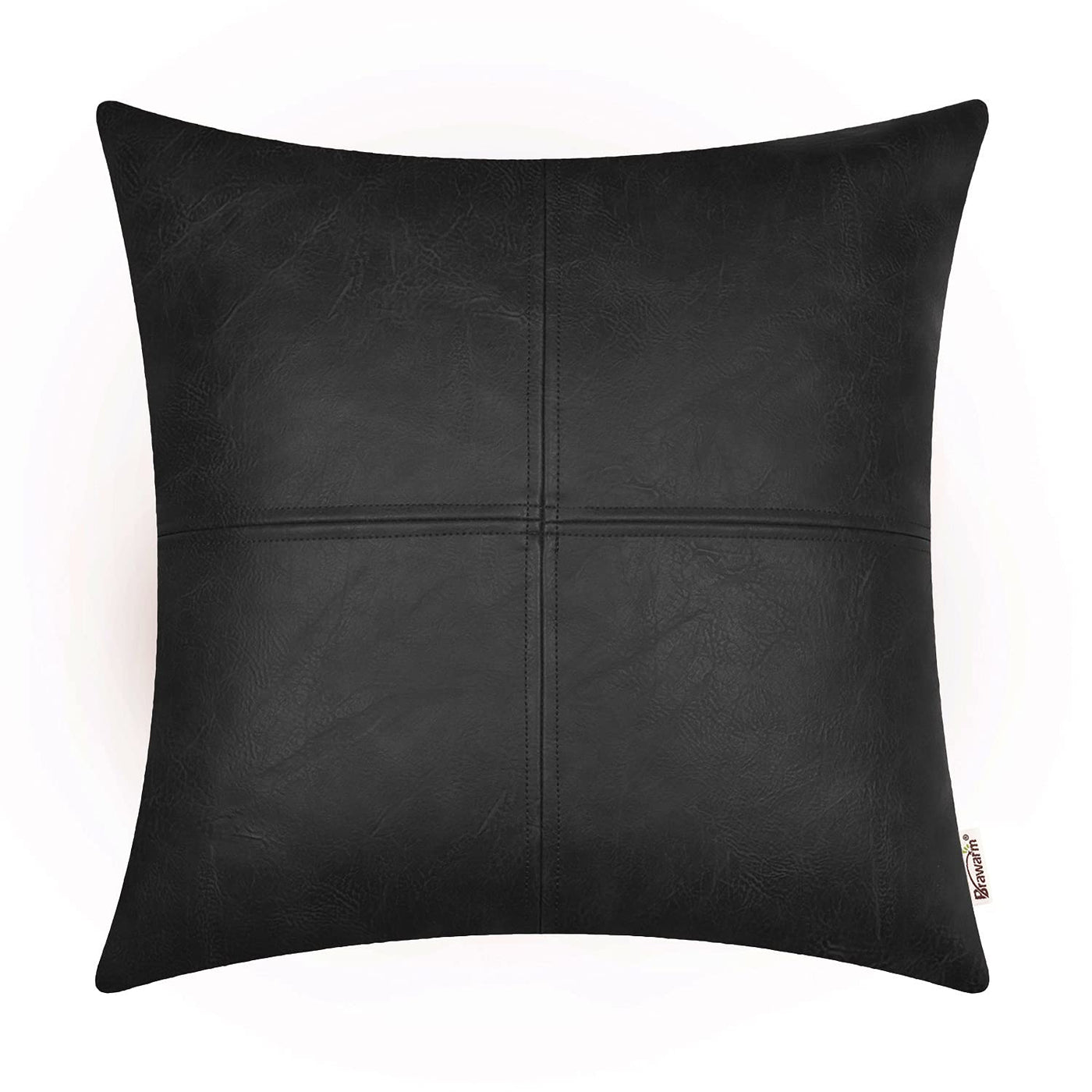Brawarm Faux Leather Throw Pillow Covers 20 X 20 Inches, Black Leather Pillow Cover, Hand Stitched Leather Decorative Pillow Cov