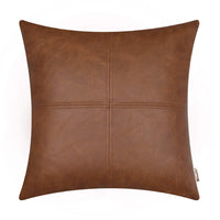 Brawarm Faux Leather Throw Pillow Covers 20 X 20 Inches, Brown Leather Pillow Cover, Hand Stitched Leather Decorative Pillow Cov
