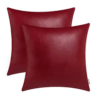 Brawarm Faux Leather Throw Pillow Covers 22 X 22 Inches - Deep Red Leather Pilow Covers Pack Of 2, Solid Dyed Leather Pillowcase