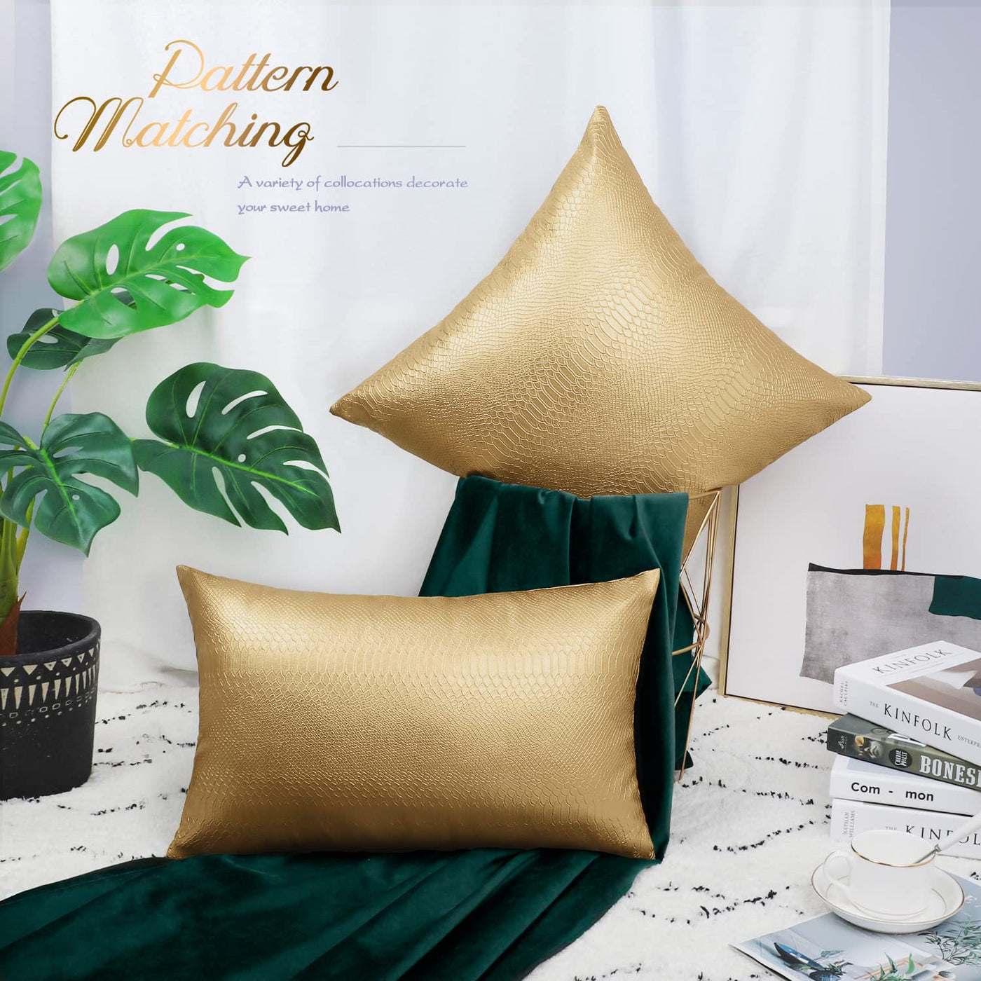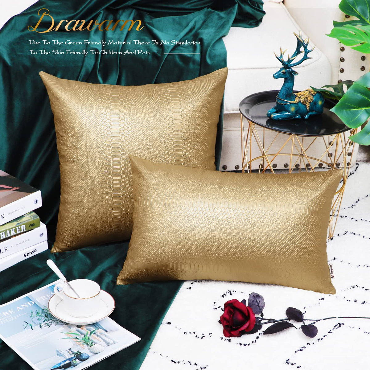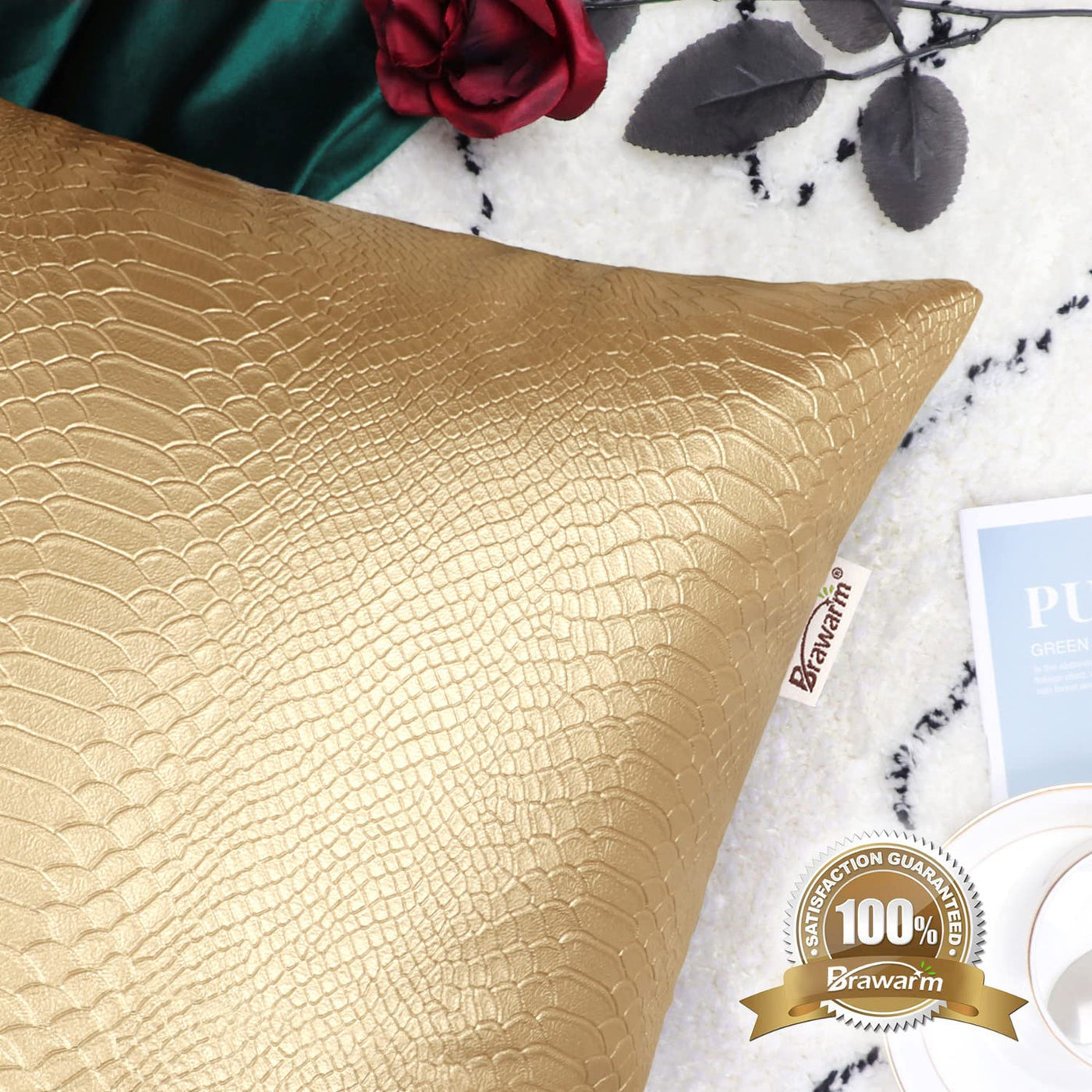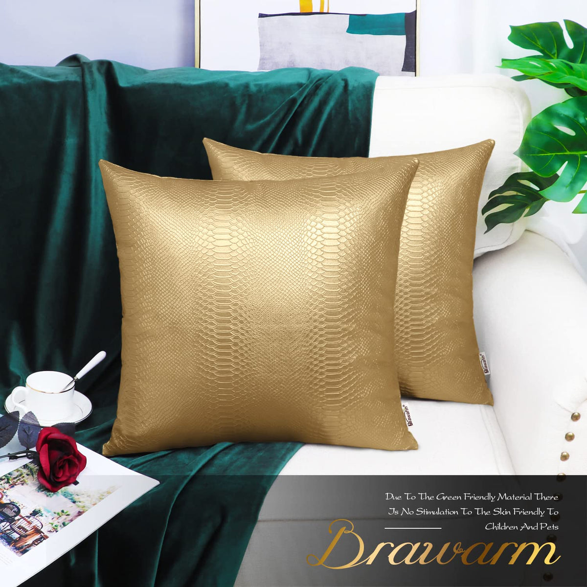 Q: How do the Brawarm Gold Faux Leather Pillow Covers enhance home decor?A: These pillow covers feature a rich sheen and modern design that can complement various decor styles, from minimalist to traditional, making them a versatile choice for living rooms, bedrooms, and outdoor spaces.