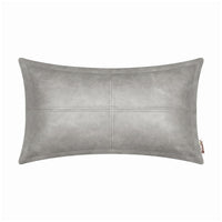 Brawarm Gray Leather Throw Pillow 12 X 20 Inches, Faux Leather Pillow Cover With Piping, Hand Stitched Leather Decorative Lumbar