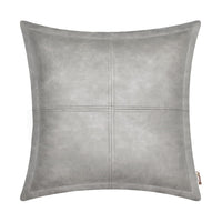 Brawarm Gray Leather Throw Pillow 22 X 22 Inches, Faux Leather Pillow Cover With Piping, Hand Stitched Leather Decorative Throw