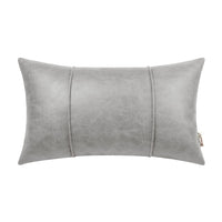 Brawarm Gray Leather Throw Pillow Covers 12 X 20 Inches - Faux Leather Lumbar Pillow Cover With Piping, Hand Stitched Leather Th