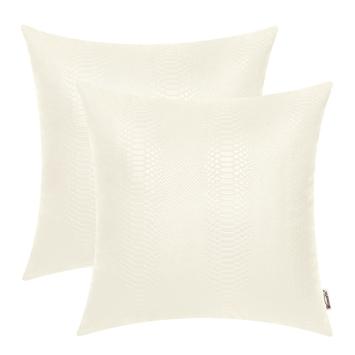 Q: What are the dimensions of the Brawarm Ivory White Faux Leather Pillow Covers?A: The Brawarm Ivory White Faux Leather Pillow Covers measure 16 x 16 inches (40 x 40 cm) and come in a set of 2.