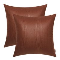 Brawarm Light Brown Leather Throw Pillows 22 X 22 Inches - Snake Leather Pillow Covers Pack Of 2, Faux Leather Decorative Pillow