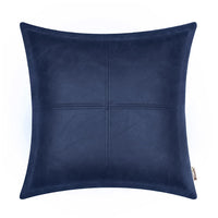 Brawarm Navy Blue Leather Throw Pillow 18 X 18 Inches, Faux Leather Pillow Cover With Piping, Hand Stitched Leather Decorative T