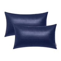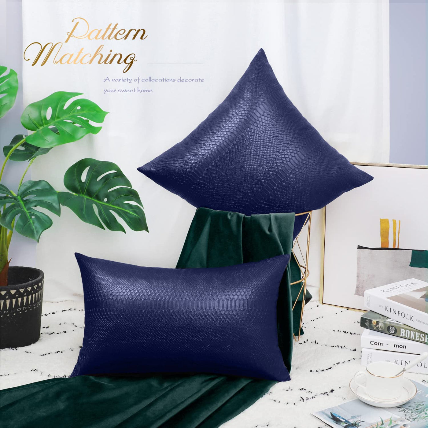 Brawarm Navy Blue Leather Throw Pillows 12 X 20 Inches, Snake Leather Pillow Covers Pack Of 2, Faux Leather Decorative Lumbar Pi