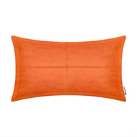 Brawarm Orange Leather Throw Pillow 12 X 20 Inches, Faux Leather Pillow Cover With Piping, Hand Stitched Leather Decorative Lumb