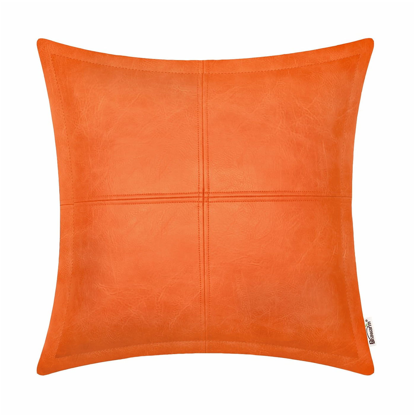 Brawarm Orange Leather Throw Pillow 22 X 22 Inches, Faux Leather Pillow Cover With Piping, Hand Stitched Leather Decorative Thro