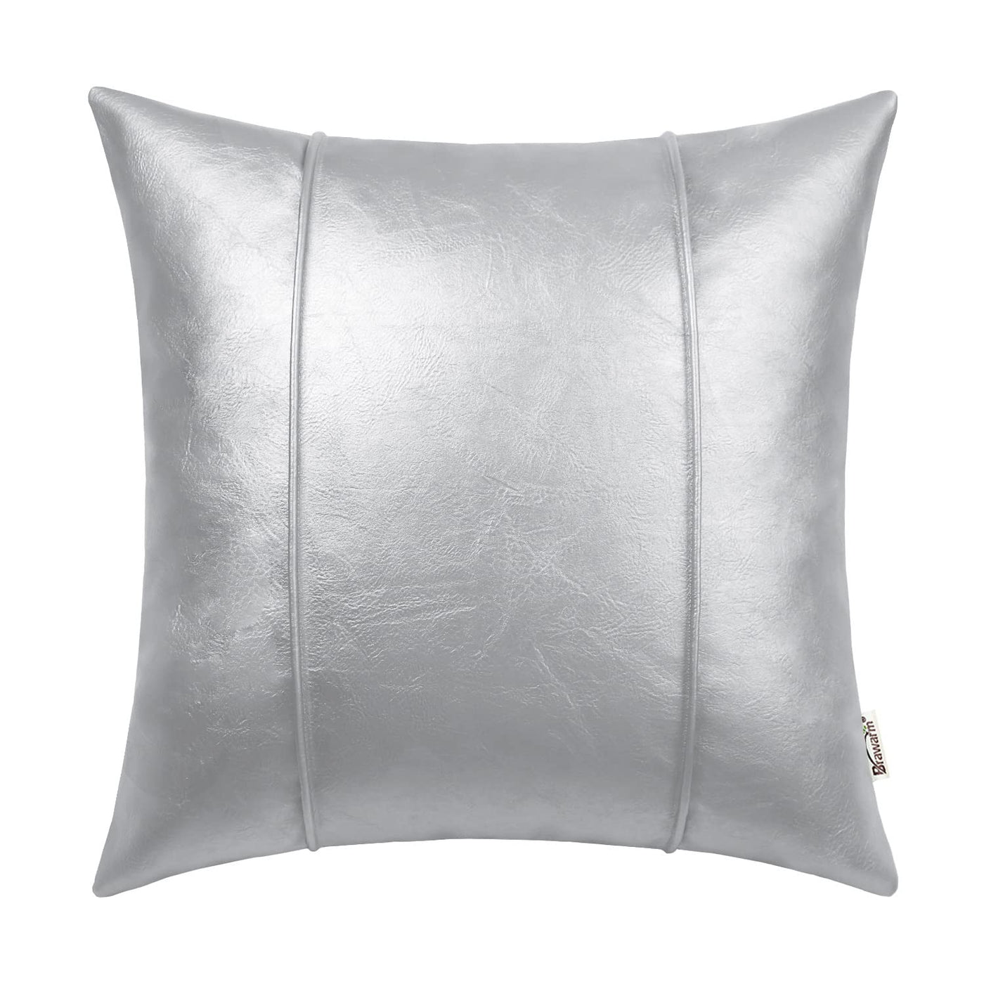 Brawarm Silver Leather Throw Pillow Covers 20 X 20 Inches - Faux Leather Pillow Cover With Piping, Hand Stitched Leather Throw P