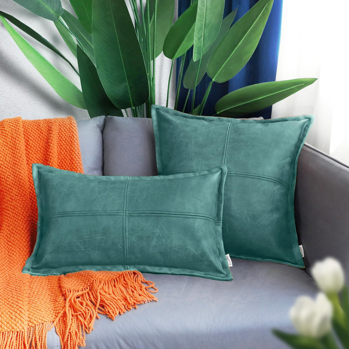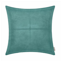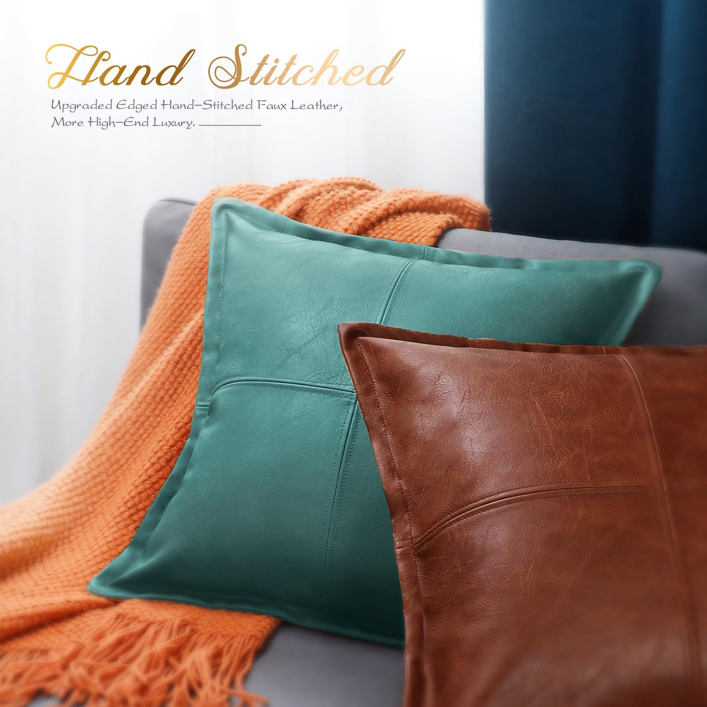 Brawarm Teal Leather Throw Pillow 20 X 20 Inches, Faux Leather Pillow Cover With Piping, Hand Stitched Leather Decorative Throw