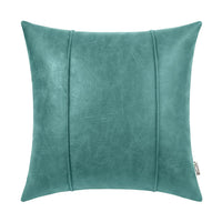 Brawarm Teal Leather Throw Pillow Covers 16 X 16 Inches - Faux Leather Pillow Cover With Piping, Hand Stitched Leather Throw Pil