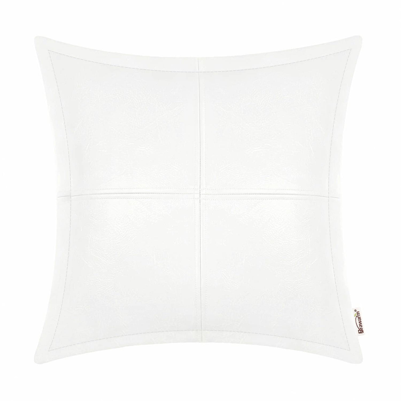 Brawarm White Leather Throw Pillow 20 X 20 Inches, Faux Leather Pillow Cover With Piping, Hand Stitched Leather Decorative Throw