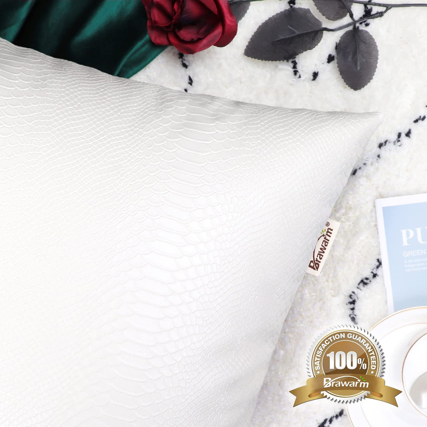 Brawarm White Leather Throw Pillows 16 X 16 Inches, Snake Leather Pillow Covers Pack Of 2, Faux Leather Decorative Pillow Covers