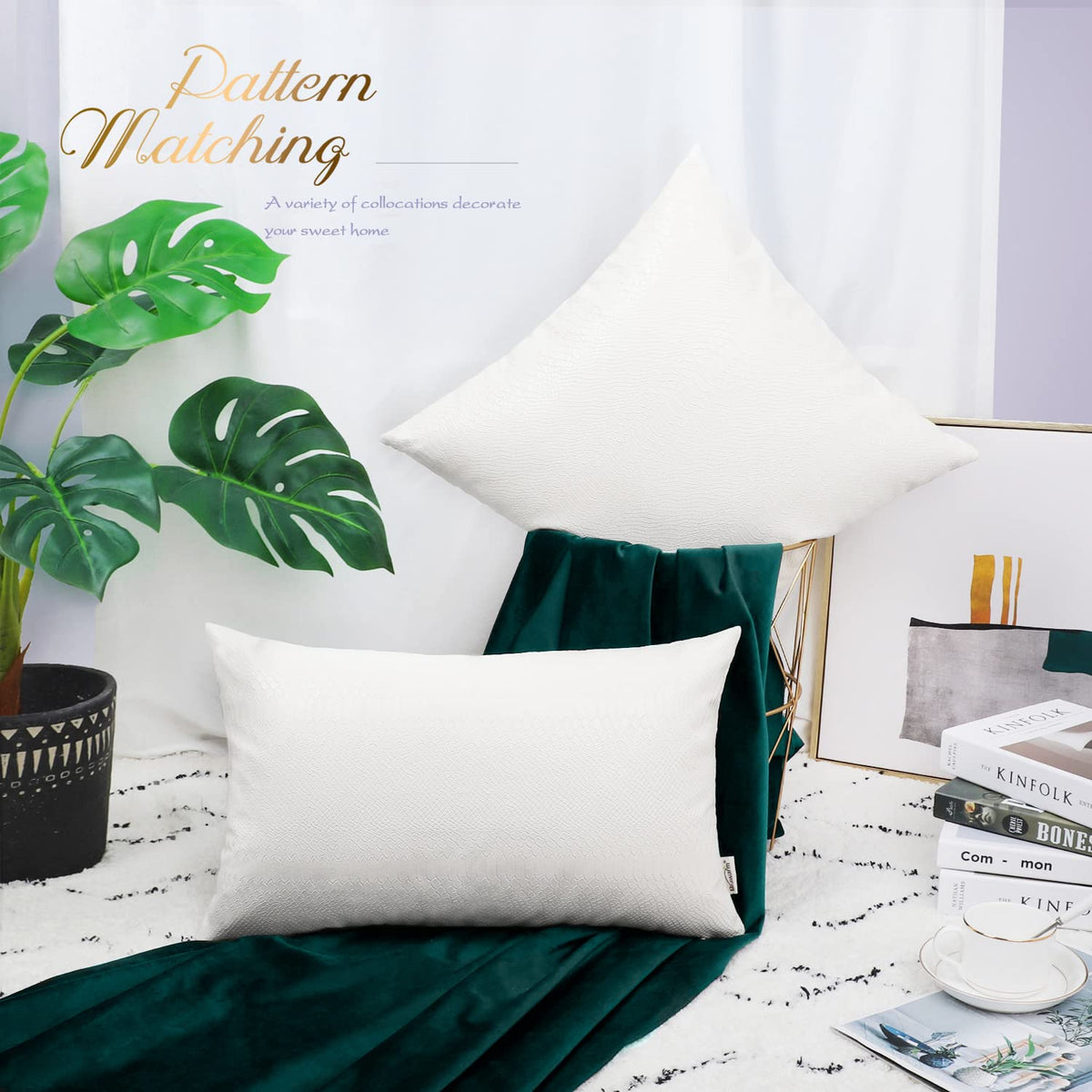 Brawarm White Leather Throw Pillows 20 X 20 Inches, Snake Leather Pillow Covers Pack Of 2, Faux Leather Decorative Pillow Covers