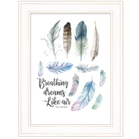 Unique and decorative, this breathing dreams like air 1 white framed print wall art will leave a lasting impression. This print is a visual artistic expression that allows you to decorate your space in style. Reproduced for you on paper, this hanging accent will be a trendy and fashionable way to dress your Adding this hanging wall art to make your room feel more finished and attractive. Instantly liven up your space with this art that brings color and feel. to your walls. 19. 'H x 15' W x 1' D