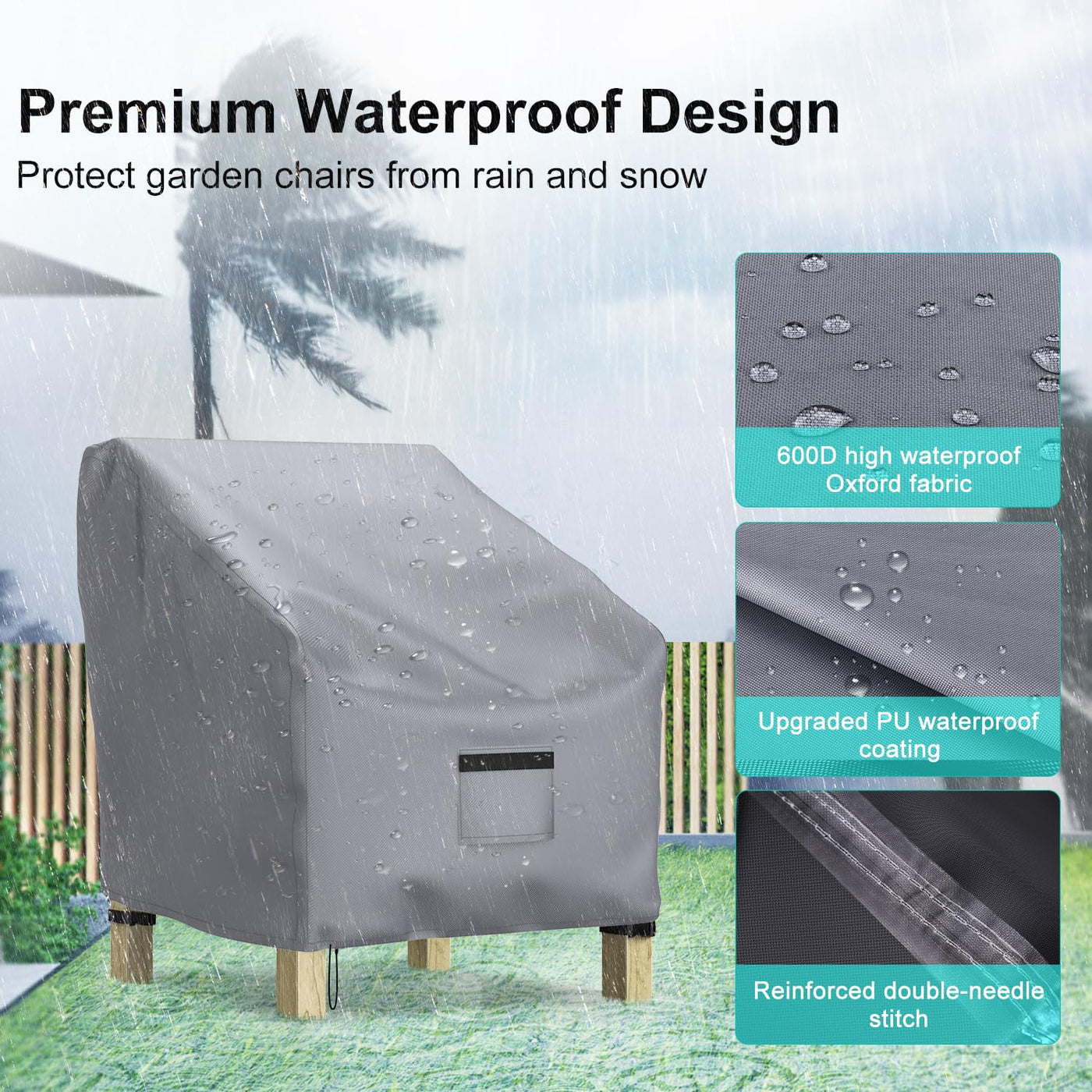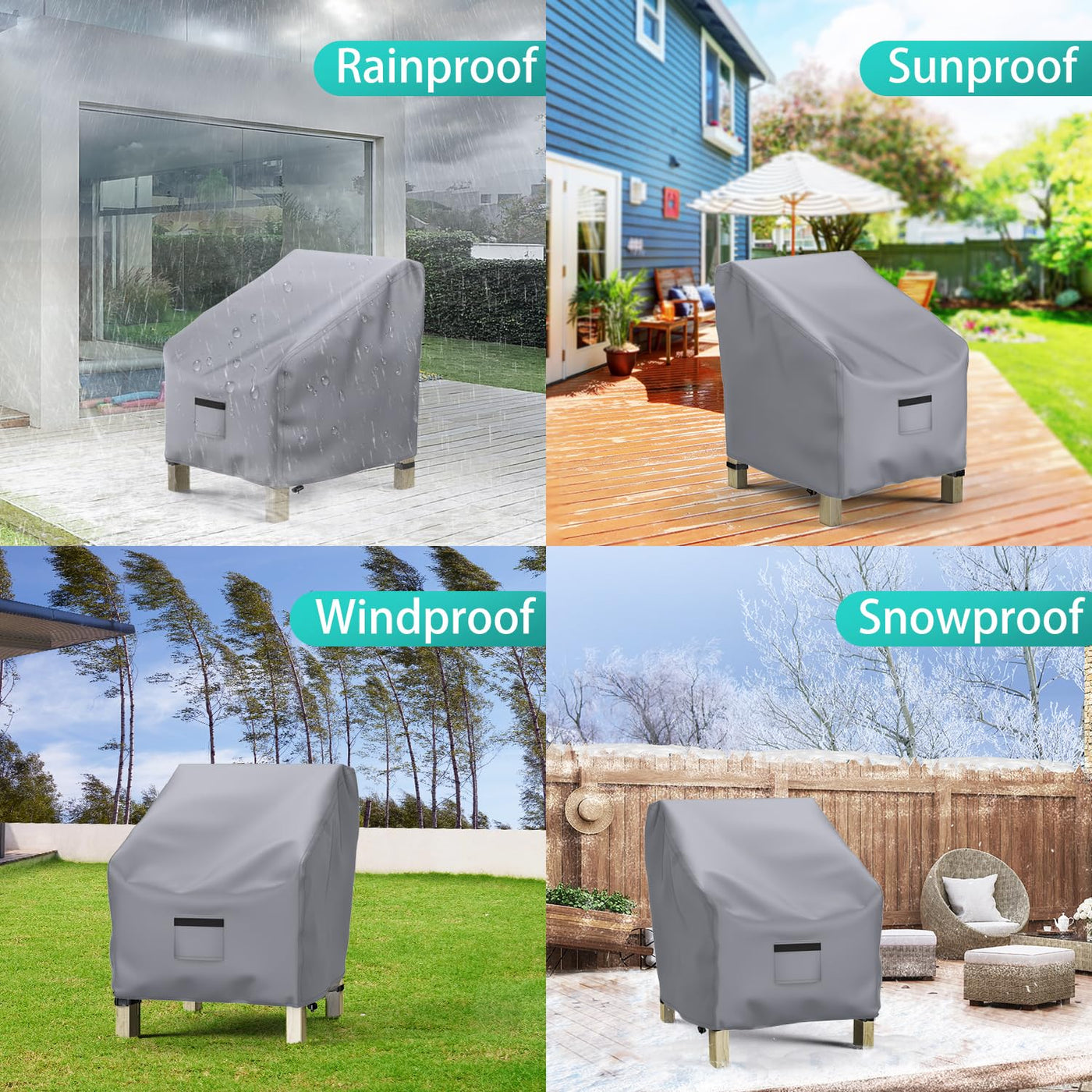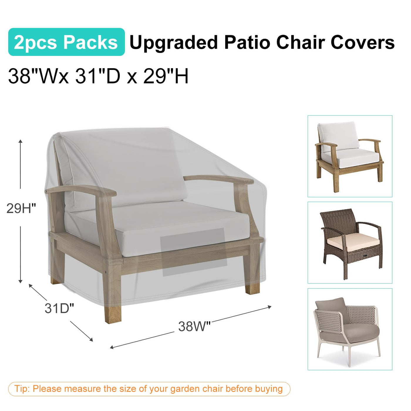 Brosyda Patio Chair Covers For Outdoor Furniture Waterproof 2 Pack, Lawn Chair Covers Heavy Duty Patio Furniture Covers, Large Covers For Lounge Lawn Deep Seat 38' W X 31' D X 29' H-Gray