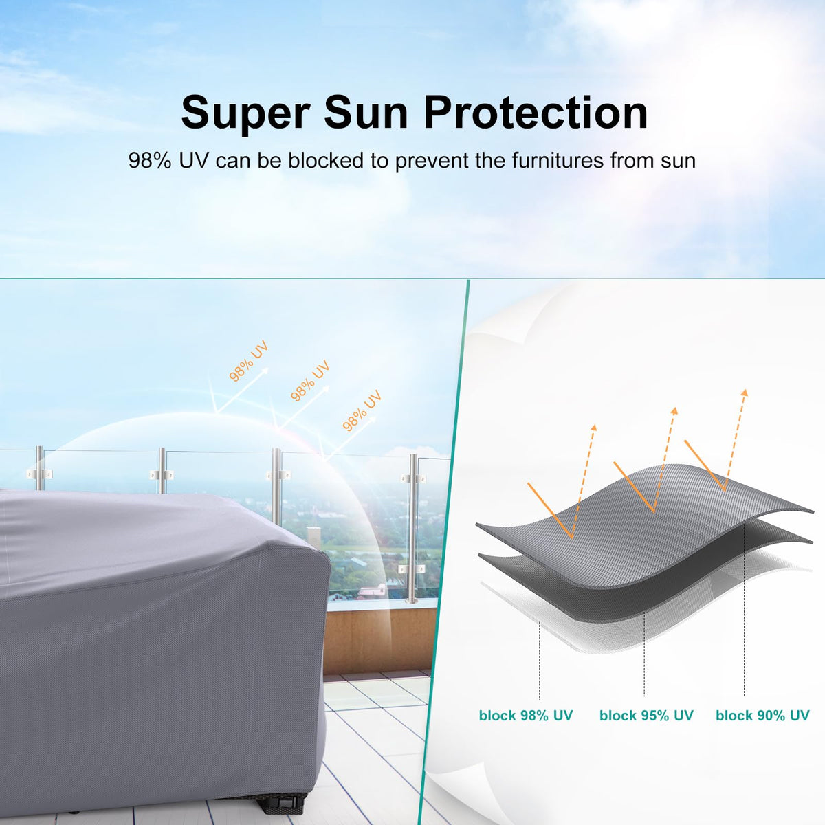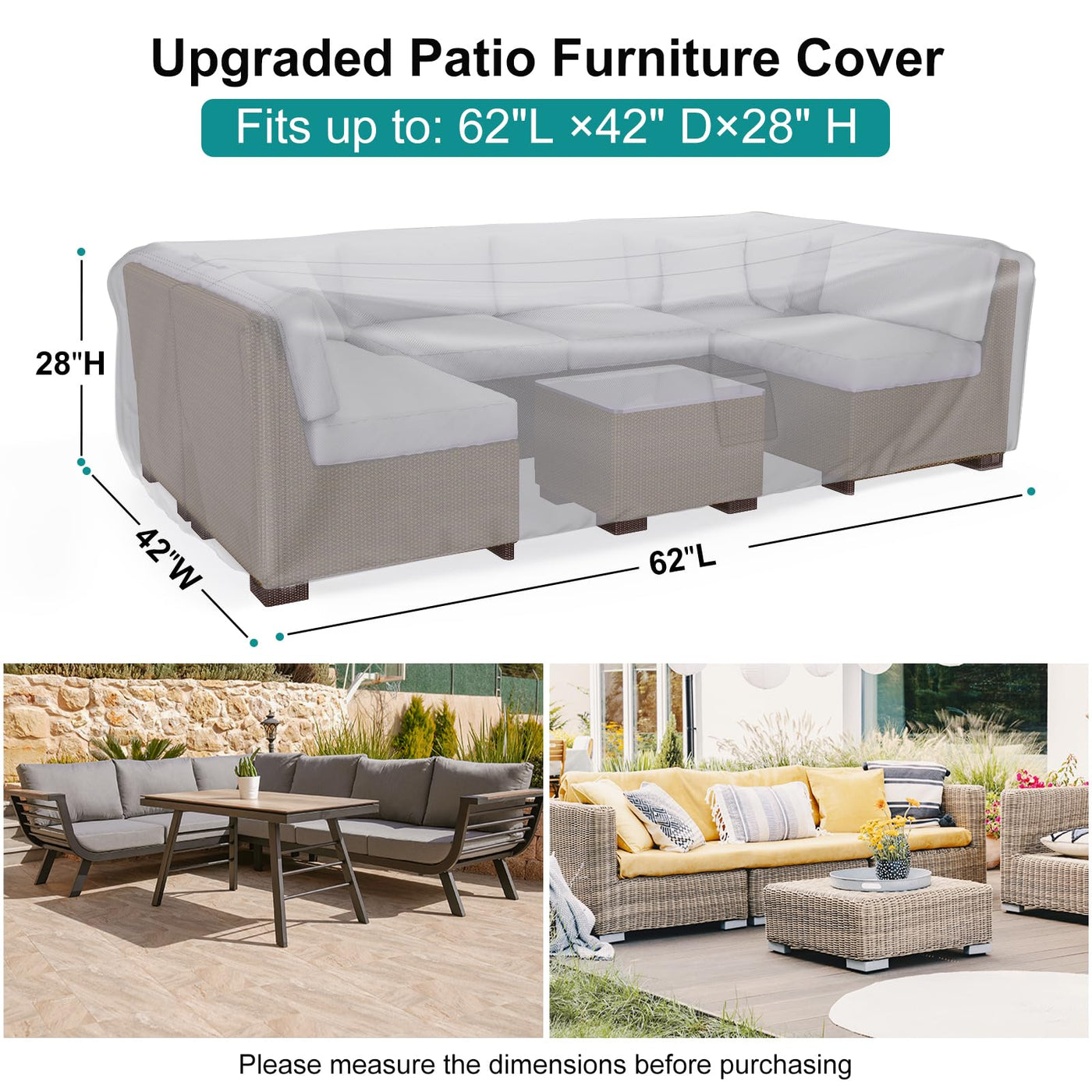 Brosyda Patio Furniture Set Cover Waterproof, Heavy Duty Funiture Covers For Outdoor Sectional Sofa Set Wicker Rattan Table Chair Rectangular,62' L×42' W×28' H,Grey