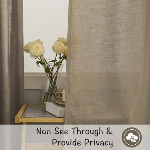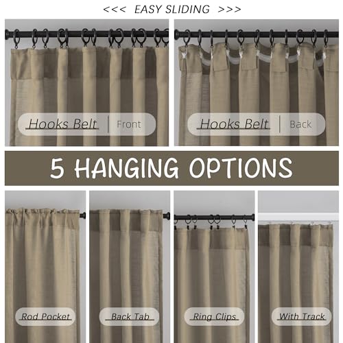Burlap Linen 144 Inch Length Curtains For Tall Floor Ceiling Villa Living Room,Taupe Back Tab Hooks Pleated Easy Open Sliding Semi Sheer 144 Inch Extra Long 2 Story Window Treatments Curtains,12 Foot