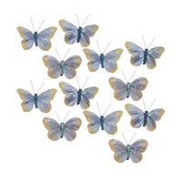 Butterfly (3 Asst) 3.75''L Feather The beautiful set of Feather Butterfly Figurines is the perfect addition to your spring decor. Featuring three assorted designs, this set is sure to add a touch of nature to your living space. The cool blue finish paired with the gold accents is the perfect combination to create a stunning display. Place the pieces togheter to make a statement, or dipslay them throughout your home to add interest to the rooms. Measures 3.75 x 2.75 x 1 each Primary Materials: Feather Reccommended for indoor use only