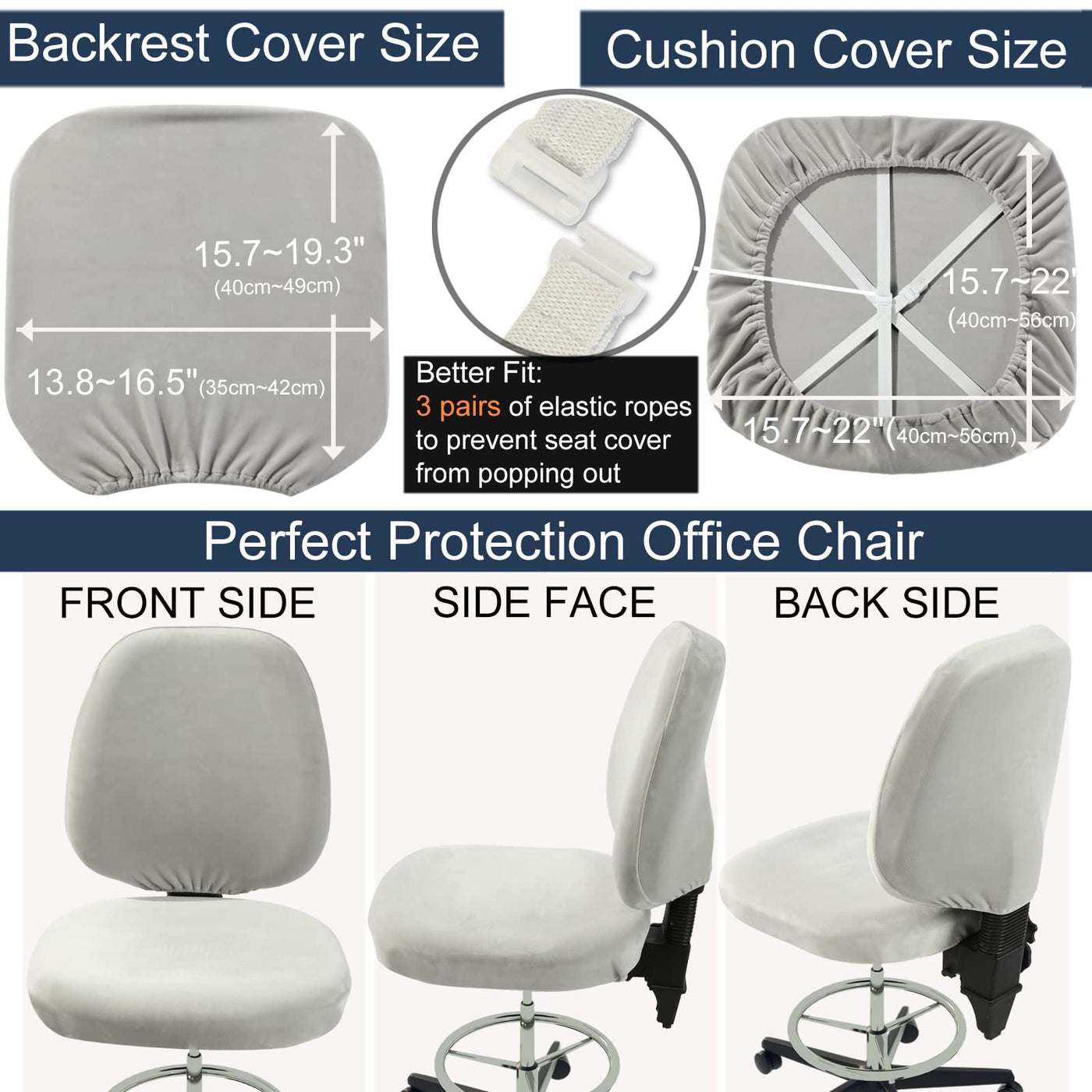 ?Measurement Of Chair: Chair Seat Width: 15.7'-21.6' (Approx.), Chair Seat Length: 15.7'-21.6' (Approx.), Backrest Height: 15.7'-19.7' (Approx.), Backrest Width: 13.8'-16.5' (Approx.). Please Measure The Chair First. | ?Features: Ul Test Report No. 1001386027. Free And Hydrolised Formaldehyde<10Mg/ Kg; Total Lead Content<20Mg/ Kg. Comply With National Standards. Cover The Tear, Rips, And Tattered Edges Of Your Plain Old Office Chairs Or Desk Chairs. Stretch And Recovers Quickly. | ?Include: The Chair Covers Separated Into 2Pcs,One For Chair Backrest, The Other For Chair Seat. | ?Easy Install & Washable: Bring A New Appearance For Rotating Swivel Chairs. Keep The Chair Cushion Clean And Comfortable. The Super-Soft Velvet Can Makes You Feel Warm And Soft. Easy To Set Up And Pick Up, Can Be Used Time And Time Again. | ?90 Day Guarantee: To Ensure Your Complete Satisfaction, We Offer A 90-Day No-Questions-Asked Money-Back Guarantee. Excellent Customer Service. Buyue 100% Guarantees Your Satisfaction.