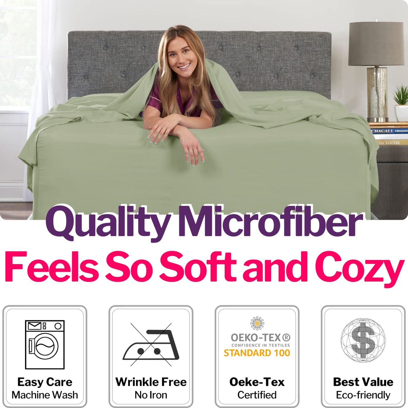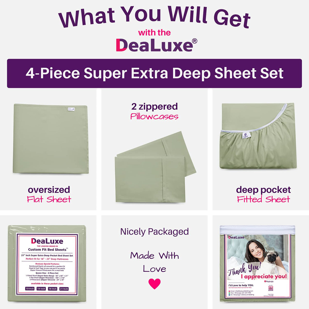 California King Sheet Sets - Deep Pocket California King Sheet Set - [4-Pieces] 21 Cal King Sheets Deep Pocket Fitted, Oversize Flat Sheet, 2 Zipper Closure Pillowcases - Cal King Bed Sheets - Green