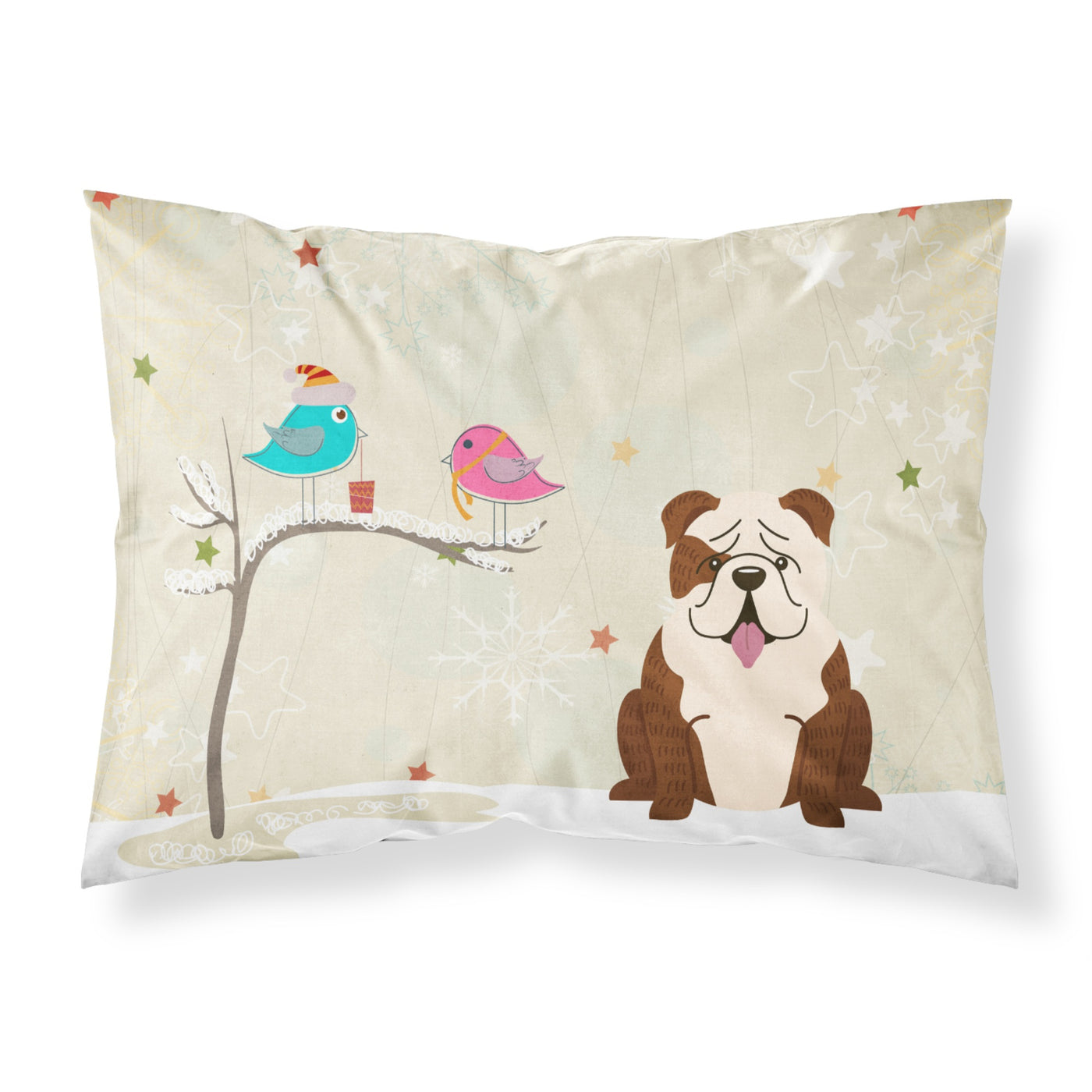 'Caroline'S Treasures Christmas Presents Between Friends English Bulldog Brindle White Fabric Standard Pillowcase Bb2593Pillowc