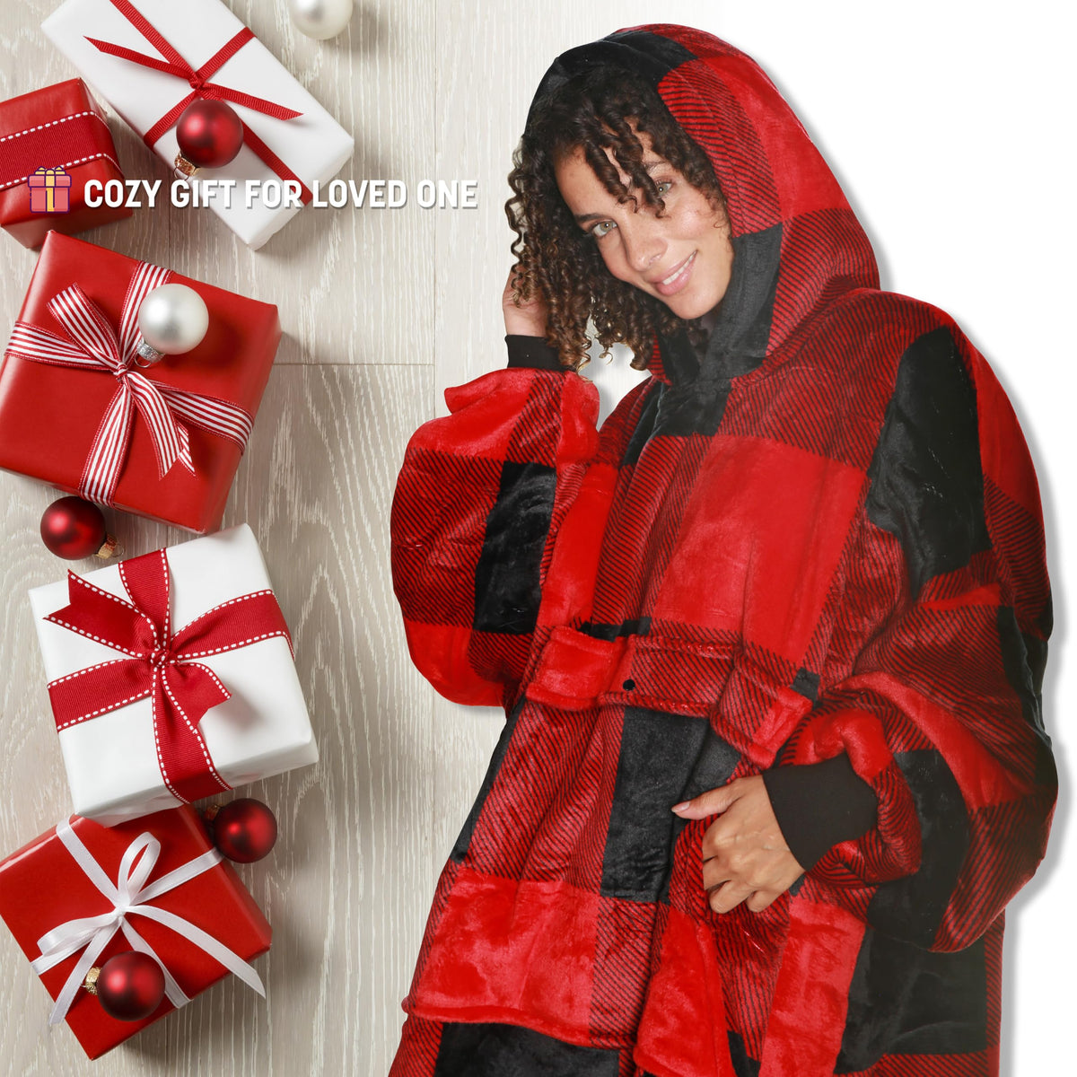 Q: What occasions is this blanket hoodie suitable for as a gift?A: The Catalonia Buffalo Plaid Oversized Blanket Hoodie makes a thoughtful gift for various occasions including Christmas, Thanksgiving, birthdays, Mother's Day, and Father's Day.