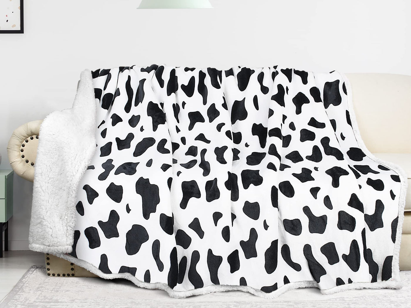 Catalonia Cow Print Sherpa Fleece Blanket, Super Soft Plush Throw Blanket For Couch Or Bed, Comfy Fluffy Winter Gift For Cow Lov