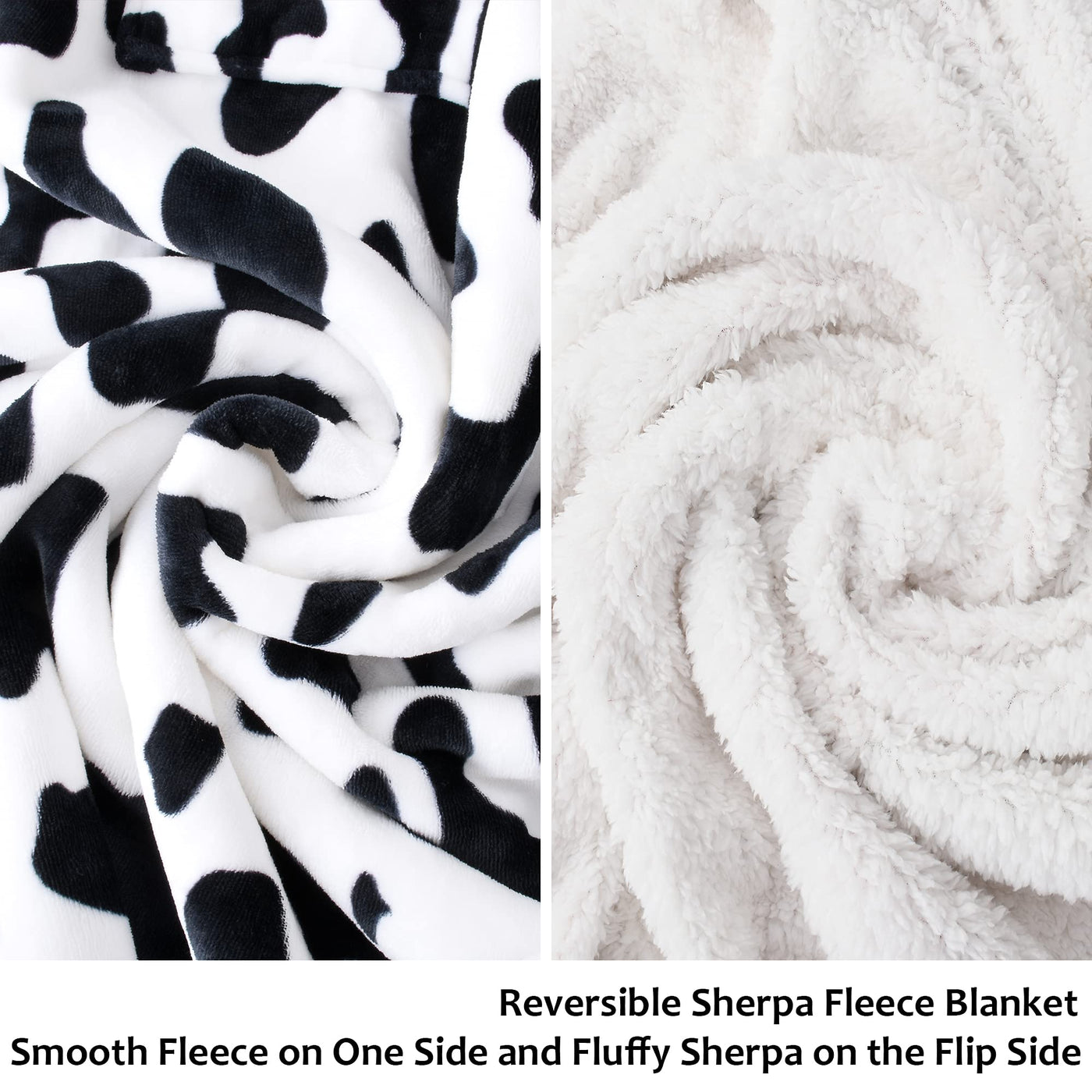 Q: What materials are used in the Catalonia Cow Print Sherpa Wearable Blanket?A: The Catalonia Cow Print Sherpa Wearable Blanket features ultra-soft micro mink fleece on one side and plush sherpa fleece on the flip side, providing a luxurious and cozy experience.