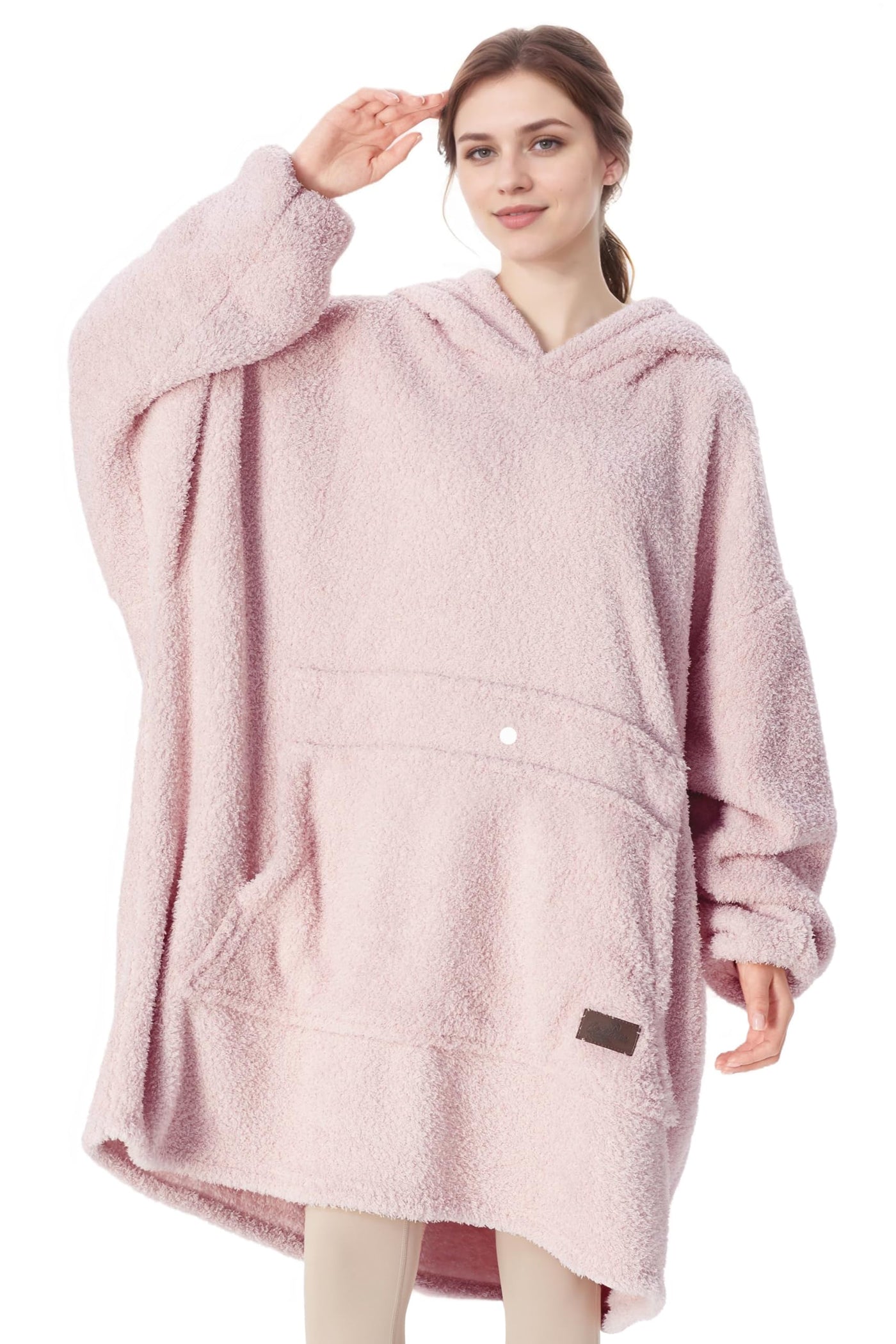 Catalonia Oversized Blanket Hoodie Sweatshirt, Wearable Lounging Fleece Pullover, Gift For Adults Women Men Kids Wife Pink