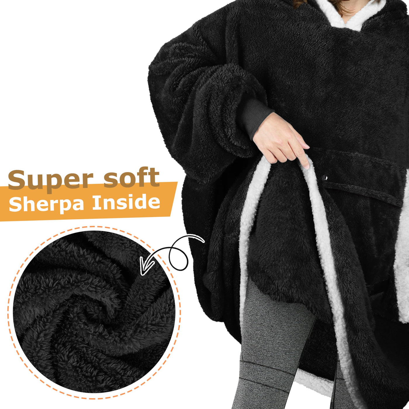Q: What material is the Catalonia Oversized Hoodie Blanket made from?A: The Catalonia Oversized Hoodie Blanket is crafted from luxurious sherpa fleece, providing unparalleled softness and warmth. This high-quality material ensures that you stay cozy and stylish, making it a great addition to your lounging or outdoor activities.