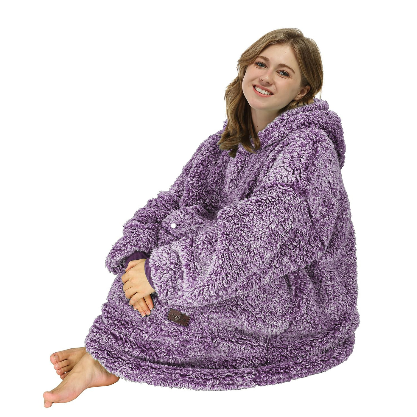 Catalonia Oversized Wearable Blanket Hoodie Sweatshirt, Comfortable Fluffy Sherpa Lounging Pullover For Adults Men Women Wife Gi