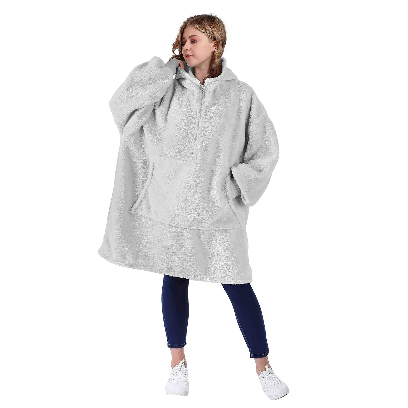 Catalonia Oversized Wearable Blanket Hoodie Sweatshirt With Zipper, Giant Faux Shearling Pullover | Gift For Adults Women Men