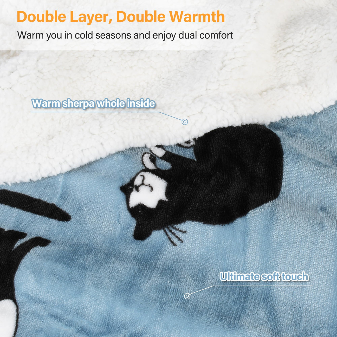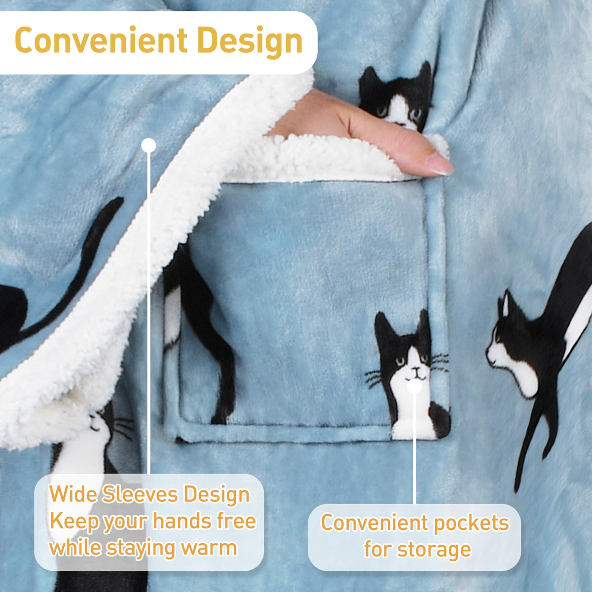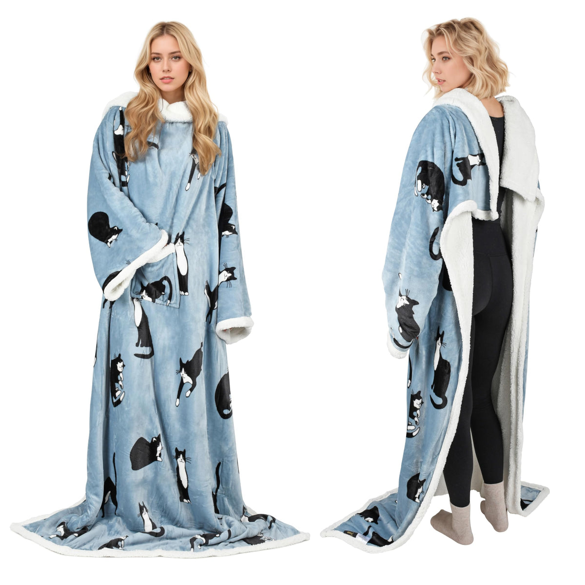 Catalonia Sherpa Wearable Blanket With Sleeves Arms, Comfy Sleeved Tv Wrap Blanket, Large Snuggly Throw For Women And Men, Gift For Her,Wonder Cat
