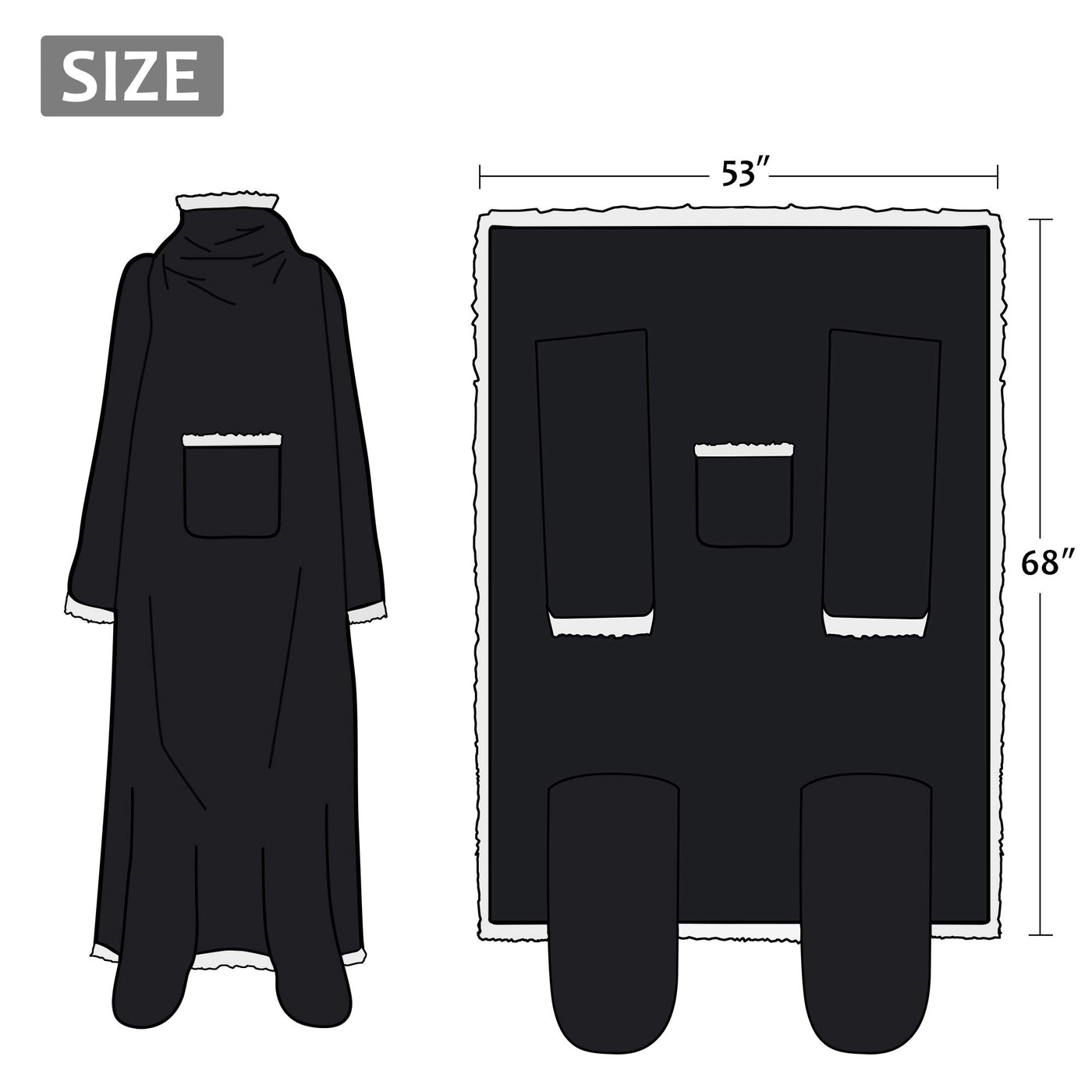 Catalonia Sherpa Wearable Blanket With Sleeves & Foot Pockets For Adult Women Men, Comfy Snuggle Wrap Sleeved Throw Blanket Robe