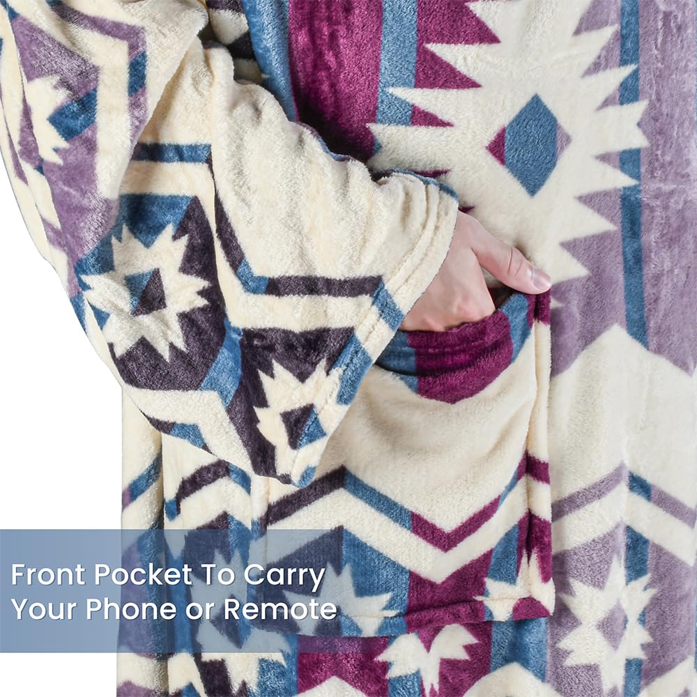 Catalonia Wearable Fleece Blanket With Sleeves And Foot Pockets For Adult Women Men, Micro Plush Comfy Wrap Sleeved Throw Blanke