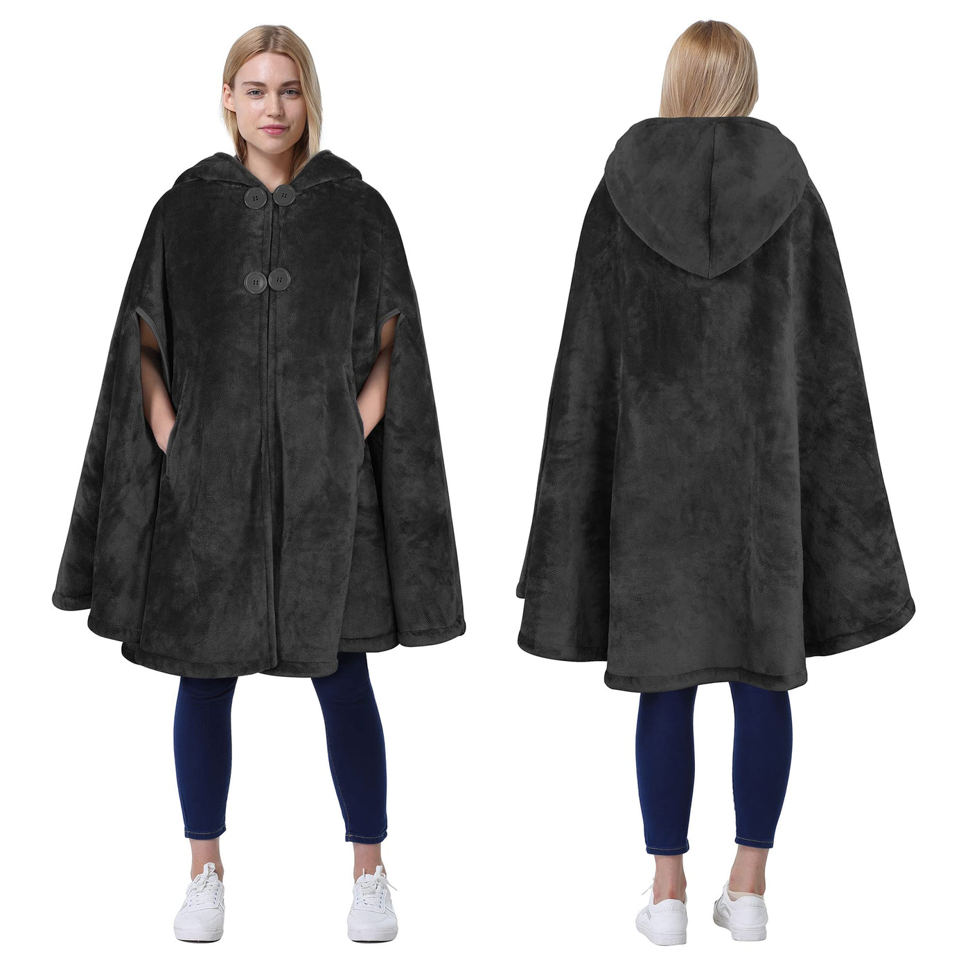 Catalonia Women'S Poncho Cape, Sherpa Fleece Cloak Coat, Snuggly Hooded Wearable Blanket, Gift Idea For Mom And Teen Girls