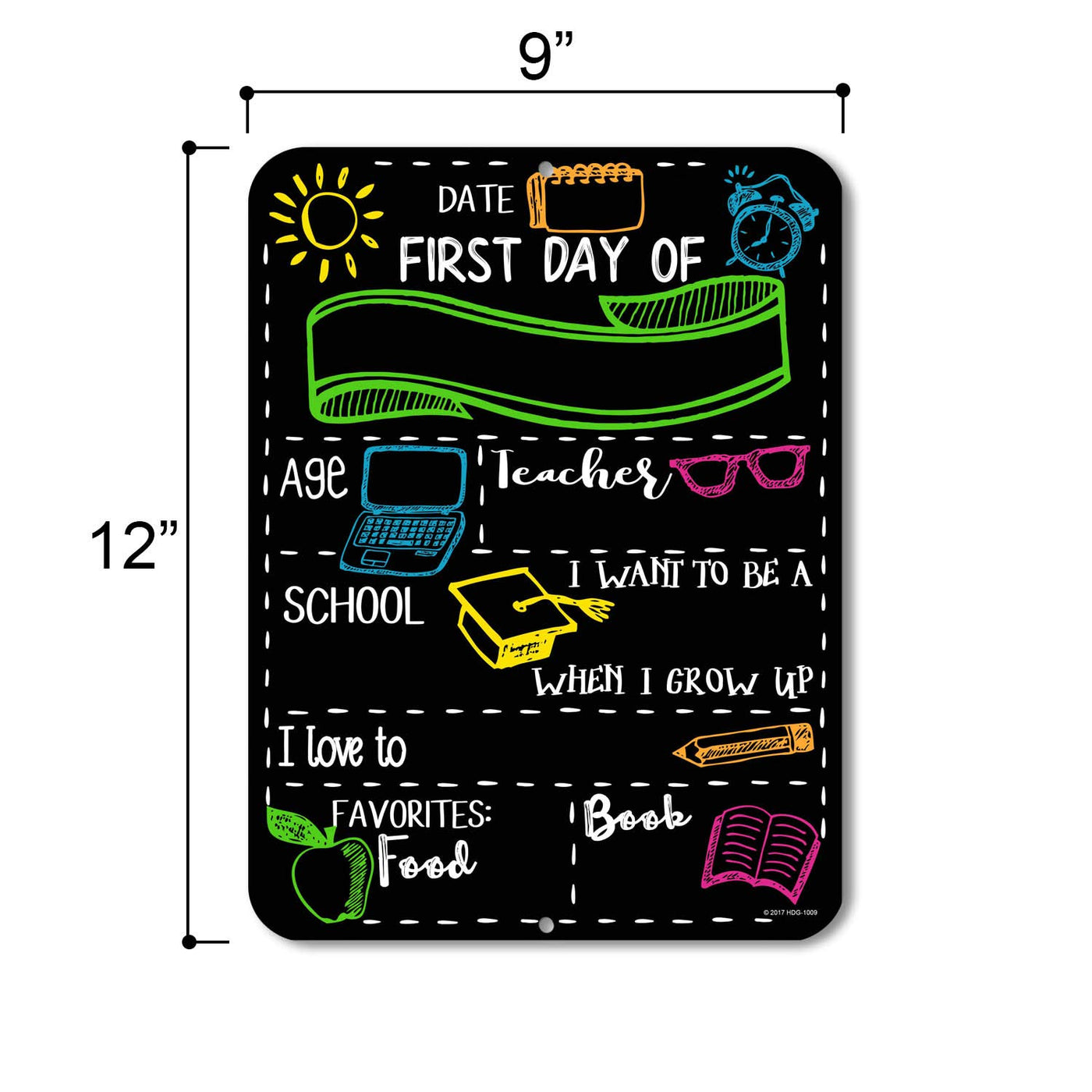 Chalkboard Style First Day Of School Photo Prop Tin 9 Inch By 12 Inch Sign - Reusable Easy Clean Back To School - Customizable W