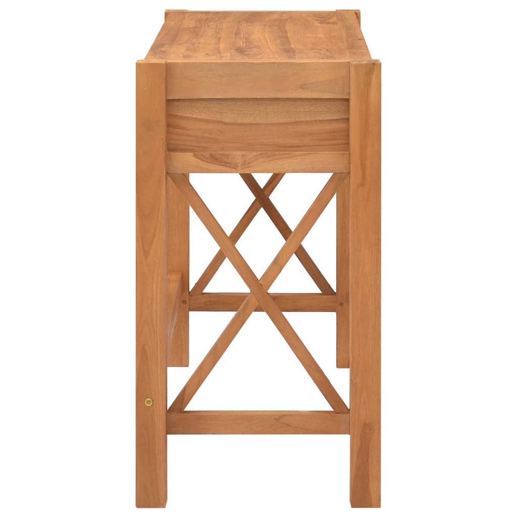 This wooden desk exudes a ic charm, making it a distinctive addition to your home or office. It can also be used as a console table or computer table. The desk is made of solid teak wood. Every step of the process is carried out with the greatest care, be it polishing, painting, or lacquering. The craftsmanship and the beautiful wood grain make every piece of furniture unique and slightly different from the next. The desk is stable, durable, but also has an aesthetic appeal. The wooden frame offers extra stability for the desk. It also has two drawers, providing ample storage space to keep your item organised and within reach. Important note: Colours and grains may vary from piece to piece, making each piece unique. The delivery is random.