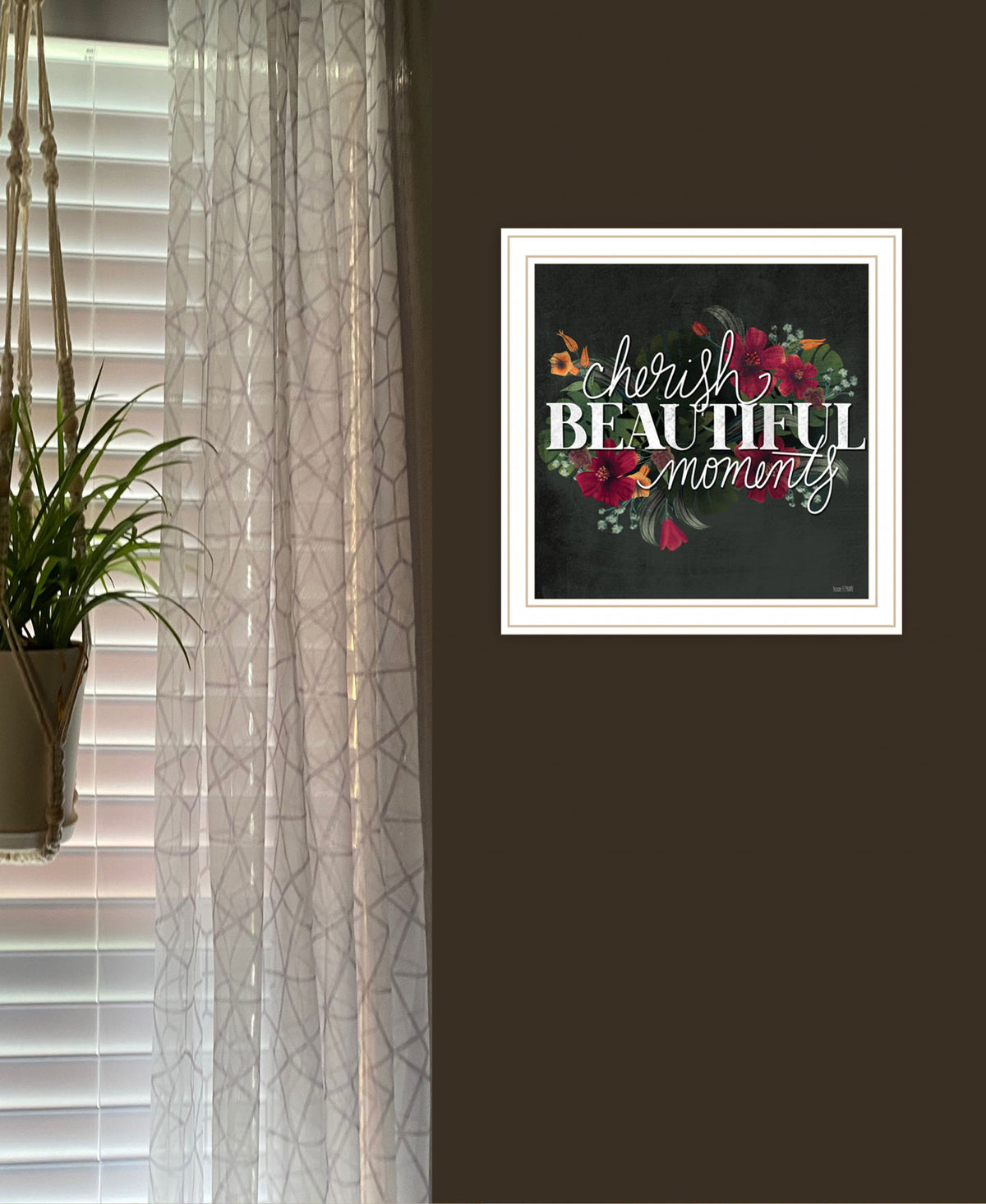 The cherish the moments white framed print wall art is the perfect decorative accessory for your home. This print is a visual artistic expression that allows you to decorate your space in style. Reproduced for you on wood, this hanging decorative accent will be a trendy and fashionable way to dress your walls in a rustic and modern farmhouse vibe. Hang on your wall to add some up to date fashion and decoration. Utilize this opportunity to create a focal point in the room with this wonderful room. wall decor option. 1. 4' H x 14' W x 1' D