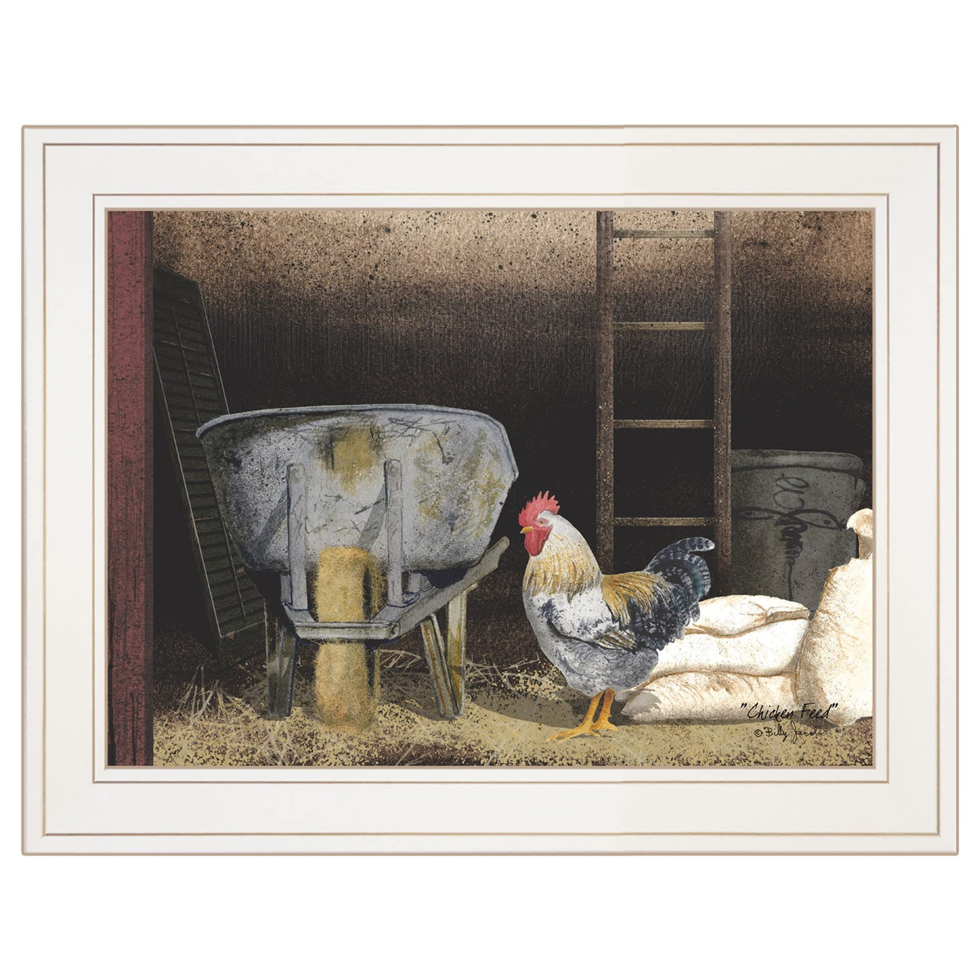 This chicken feed 1 white framed print wall art will add a beautiful decorative accent to your decor. Update your walls with this farm animal decor. This print is a visual artistic expression that allows you to decorate your space in style. Reproduced for you on paper, this hanging accent will be a trendy and fashionable way to dress your walls. Hang on your wall to add up to some fashion and decoration. Utilize this opportunity to create a focal point in the room with this fabulous wall decor option. 15' H x 19' W x 1' D